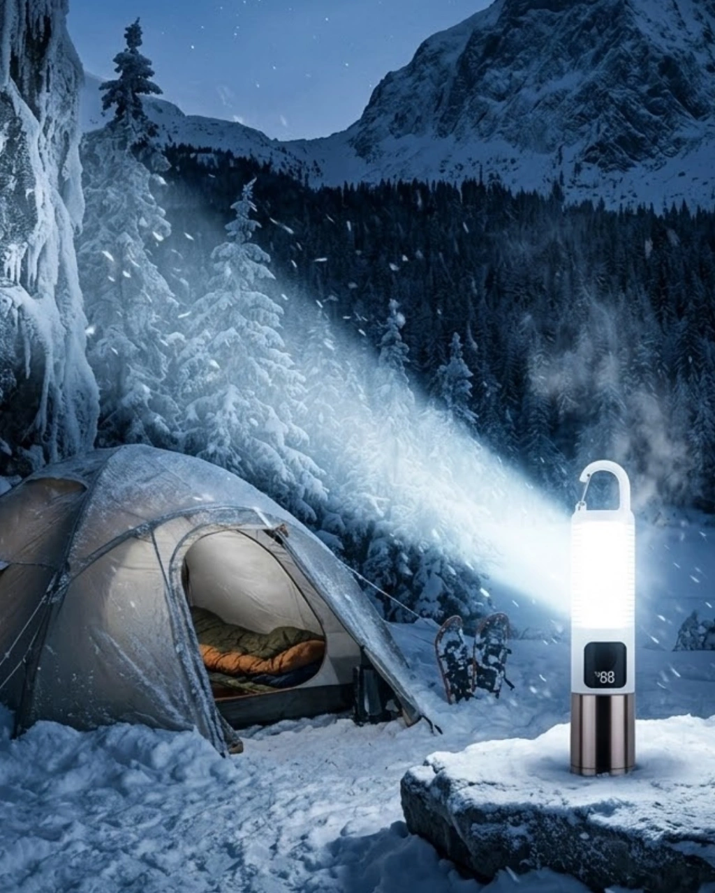 USB şarjlı LED kamp feneri, güçlü aydınlatma performansı ve taşınabilir tasarımı ile outdoor aktiviteleri için geliştirilmiş çok amaçlı bir aydınlatma ürünüdür. Maksimum 500 lümen ışık gücü, karanlık ortamlarda güçlü ve net bir aydınlatma sağlayarak güvenli kullanım sunar.Çift ışık kaynağı özelliği sayesinde farklı aydınlatma ihtiyaçlarına uygun kullanım imkanı sağlar. Geniş alan aydınlatması sağlayan LED sistemi, kamp alanlarında veya açık hava aktivitelerinde etkili bir ışık performansı sunar.USB şarj özelliği sayesinde cihaz birçok farklı güç kaynağı ile kolaylıkla şarj edilebilir. Powerbank, araç içi USB, bilgisayar veya adaptör kullanarak pratik şekilde şarj edebilirsiniz. Bu özellik özellikle kamp ve seyahatlerde büyük kolaylık sağlar.Ürün üzerinde bulunan dijital pil göstergesi, kalan şarj seviyesini göstererek kullanıcıların batarya durumunu kolayca kontrol etmesini sağlar. Böylece cihazın ne zaman şarj edilmesi gerektiği net şekilde görülebilir.Üst kısmında bulunan askı aparatı sayesinde çadır içerisinde, kamp alanlarında veya farklı ortamlarda kolayca asılarak kullanılabilir. Aynı zamanda elde taşınabilir tasarımı sayesinde fener olarak da kullanılabilir.Dayanıklı gövde yapısı sayesinde outdoor kullanım koşullarına uygun olarak üretilmiştir. Kamp, piknik, balıkçılık, doğa yürüyüşü, karavan seyahati, bahçe aydınlatması ve elektrik kesintileri gibi birçok farklı kullanım alanında tercih edilebilir.Kompakt ve hafif tasarımı sayesinde çanta içinde kolay taşınabilir ve her zaman yanınızda bulundurabileceğiniz pratik bir aydınlatma çözümü sunar.