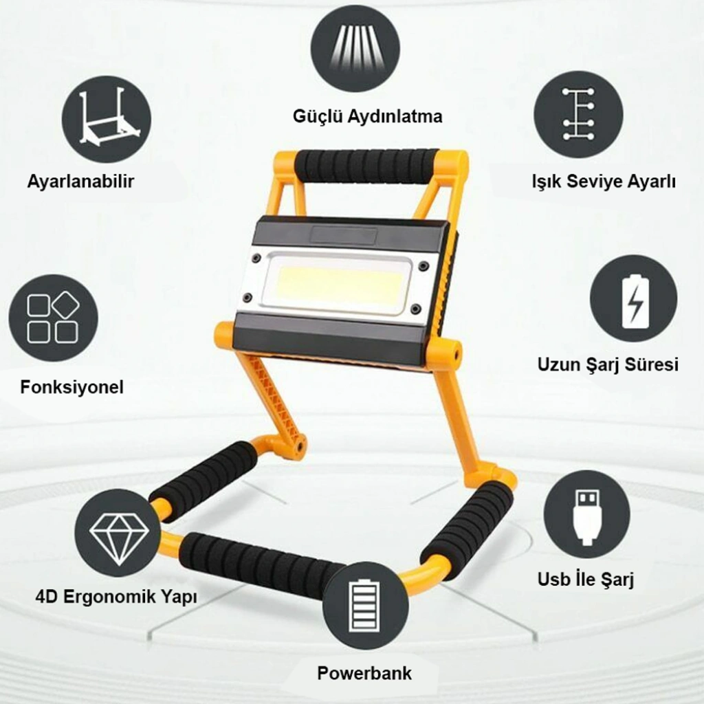 Özellikler: Tür: LED Sel lamba Malzeme: Sert Plastik TPR ( ağır darbelere dayanıklı ) Miktar: 1 adet Ürün Rengi: Sarı LED Türü: COB 20W LED LED Adet: 1 Işık Renk: Beyaz Lümen: 1300LM Renk Sıcaklığı: 6000-6500K Işık Modu: Yüksek - Düşük - SOS Kiriş Açısı: 120 derece Şarj Süresi: 5 Saat Çalışma Süresi: 3 Saat - 5 Saat - Sellektör Modu 15 Saat Güç: 20W Giriş: DC 5V 1A Dönüş Açısı: 360 ° Yağmur Suyu Geçirmez: IP65 Aydınlatma Mesafesi: Maks. 100m / 328ft Yuva: 1 * USB yuvası, 1 * Mikro USB yuvası Anahtar: Evet Kullanım Süresi: 50.000 saatten fazla Pil Kapasitesi: 2 * 18650 lityum şarj edilebilir pil+ 4* (AA ) Ürün Boyutu: 24 * 22 *36 cm