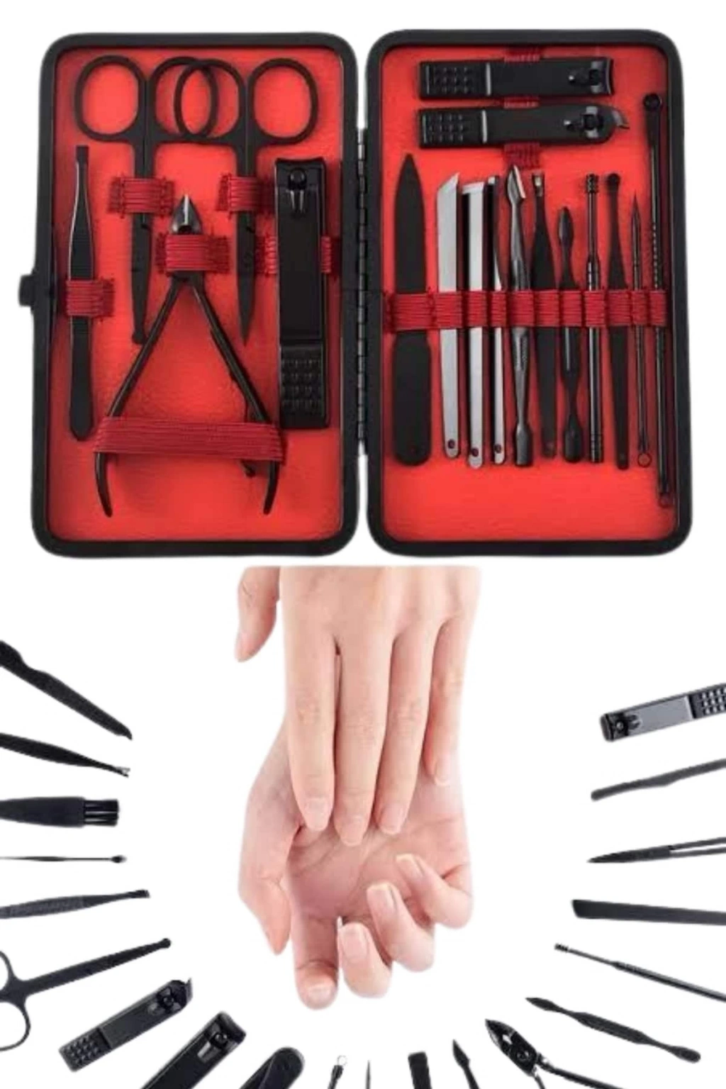 17 parça manikür pedikür seti, hem el hem de ayak bakımı için ihtiyaç duyacağınız tüm malzemeleri içerir. Paslanmaz çelikten üretilmiş olan set, dayanıklılık ve uzun ömür sağlar, ayrıca güvenli sterilizasyon olanağı sunar. Yeni nesil siyah kaymaz parlatma teknolojisi ile keskinlik artırılmış olup, estetik ve kullanım kolaylığı sağlar.Paslanmaz Çelik ve Yüksek Kalite:Tüm ürün parçaları, %100 paslanmaz çelikten üretilmiştir. Bu malzeme, sağlamlık ve dayanıklılık sağlar, korozyona karşı direnç gösterir ve enfeksiyon riskini minimize eder. Keskin ve düzgün kesimler yaparak, tırnak bakımını profesyonel seviyeye taşır.Şık ve Taşınabilir Deri Çanta:Set, şık bir deri kaplama çanta ile birlikte gelir. Fermuarla kolayca açılıp kapanabilen bu çanta, tüm aletleri düzenli tutar ve taşımasını kolaylaştırır. Hafifliği sayesinde, seti her gün çantanızda taşıyabilir veya seyahatlerde yanınıza alabilirsiniz.Kapsamlı Bakım Seti:Bu set, el ve ayak bakımının her aşamasını kolaylaştıran birçok araca sahiptir. İçeriğinde büyük ve küçük tırnak makasları, sivri uçlu tırnak makası, çift uçlu komedon, törpü, et ittirici, pedikür bıçakları ve daha birçok kullanışlı alet bulunur. Bu araçlarla tırnak bakımınızı profesyonel seviyeye çıkarabilirsiniz.Sağlık ve Temizlik:Ürünler, kolayca temizlenebilir ve sterilize edilebilir özelliklere sahiptir. Bu da hijyen açısından büyük önem taşır, çünkü enfeksiyon riskini en aza indirir. Paslanmaz çelik yapısı, uzun süreli kullanımda bile dayanıklılığını korur.Paket İçeriği: 1 adet büyük tırnak makası 1 adet küçük tırnak makası 1 adet sivri uç tırnak makası 1 adet çift uçlu komedon 1 adet törpü 1 adet et ittirici 1 adet çift taraflı tırnak kaldırma aleti 1 adet makas 1 adet pedikür bıçağı 1 adet çarpraz pedikür bıçağı 1 adet kavisli pedikür bıçağı 1 adet V şeklinde et itme 1 adet itme çubuğu 1 adet tırnak temizleme 1 adet cımbız 1 adet iğneli komedon 1 adet kulak temizlemeÖzellikler: Yüksek kaliteli paslanmaz çelik malzeme Şık ve taşıması kolay deri çanta Kolay sterilizasyon ve temizlik Tırnak bakımında profesyonel sonuçlar Seyahat dostu, taşınabilir yapı