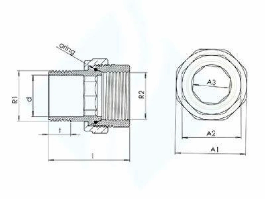 Anma Ölçüsü Nominal size (R1) | R2 (mm) | I (mm) | t (mm) | d (mm) | A1 (mm) | A2 (mm) | A3 (mm) | O-ring (mm) |