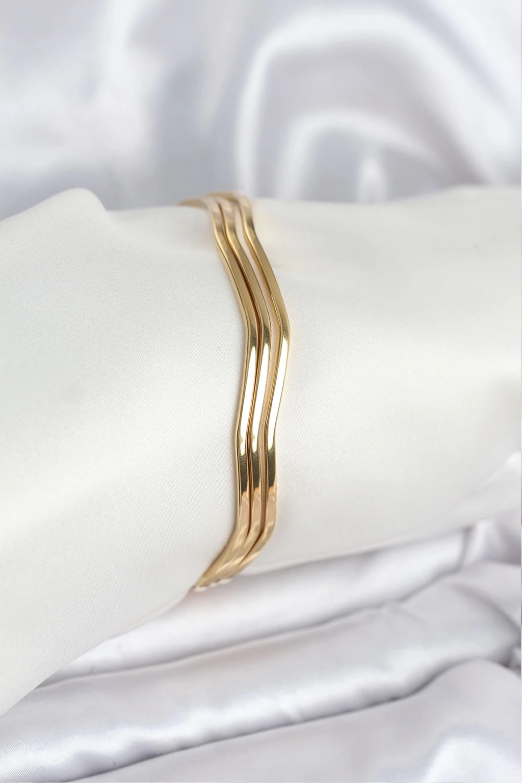 316L Çelik Gold Renk 65 mm Ajda Zikzak Model 3lü Kadın Bileklik