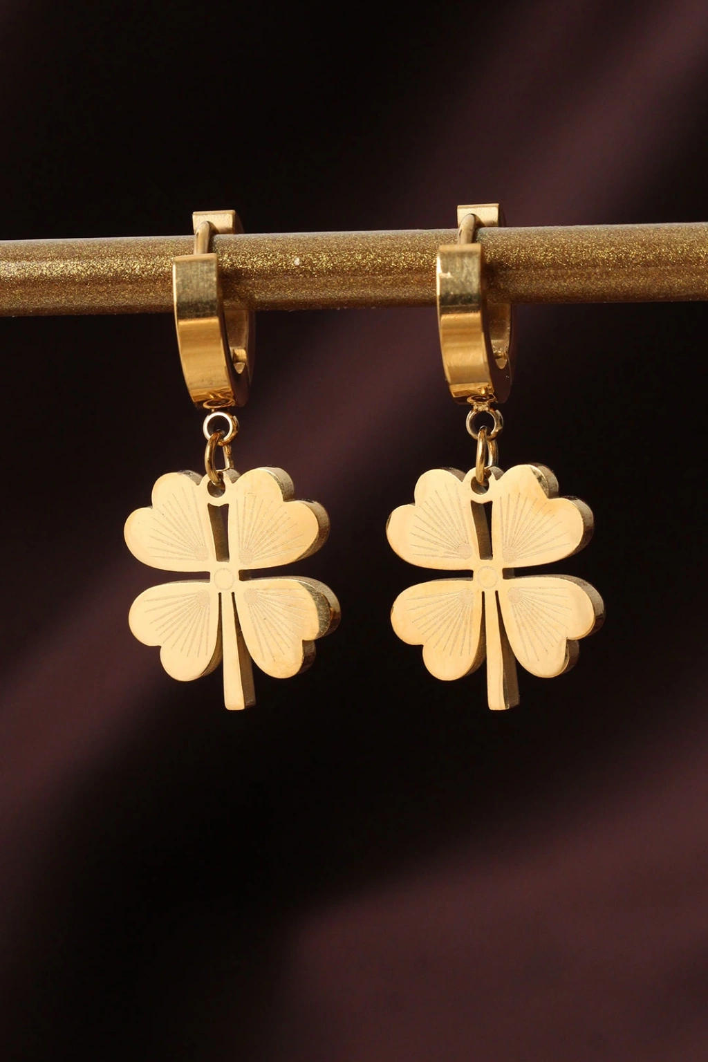 316L Çelik Gold Renk Yonca Küpe