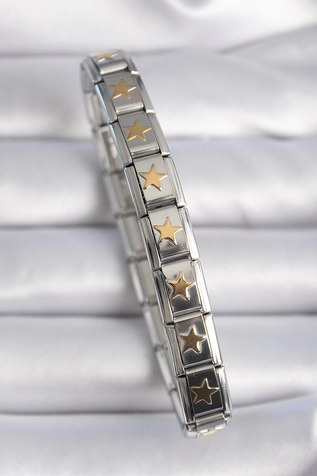 316L Çelik Gümüş Renk Gold Yıldız İşleme Nomination Charm Bileklik