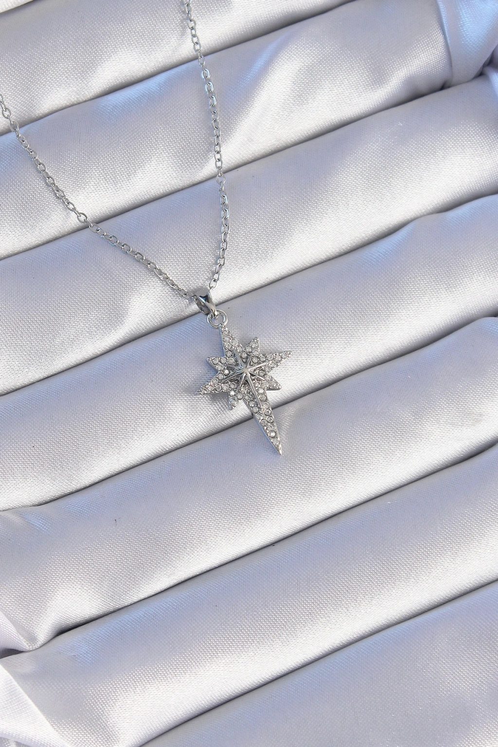 316L Çelik Gümüş Renk Zirkon Taşlı Kutup Yıldızı Model Kolye