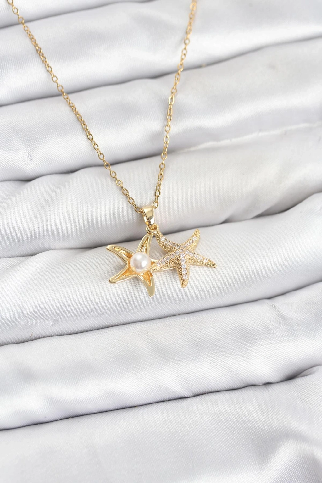 316L Çelik Zincir Gold Renk Deniz Yıldızı Model Zirkon Taşlı Kadın Kolye
