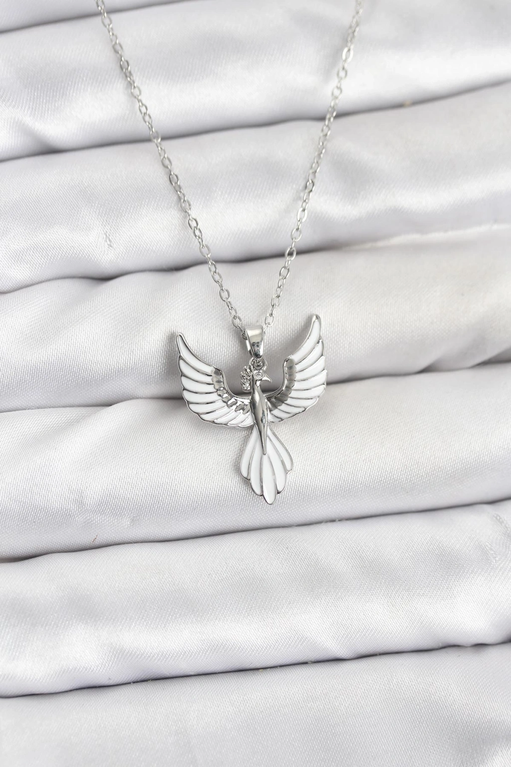 316L Çelik Zincir Gümüş Renk Anka Kuşu Model Kadın Kolye