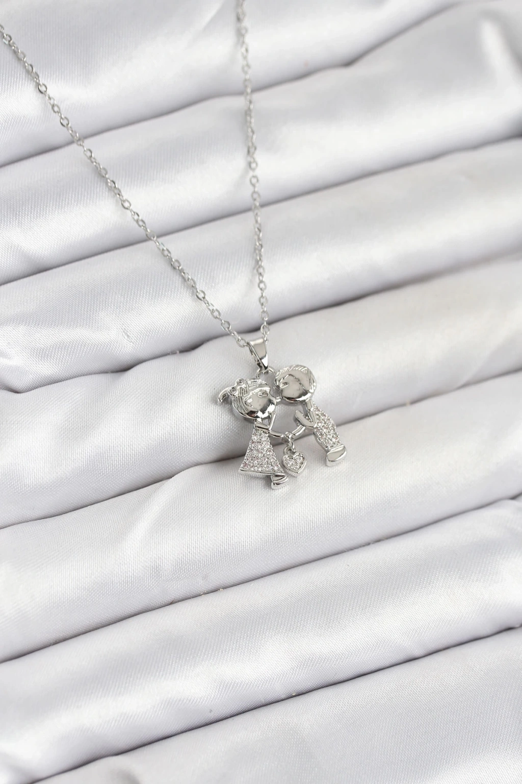 316L Çelik Zincir Gümüş Zirkon Taşlı Kalpli Kadın Kolye