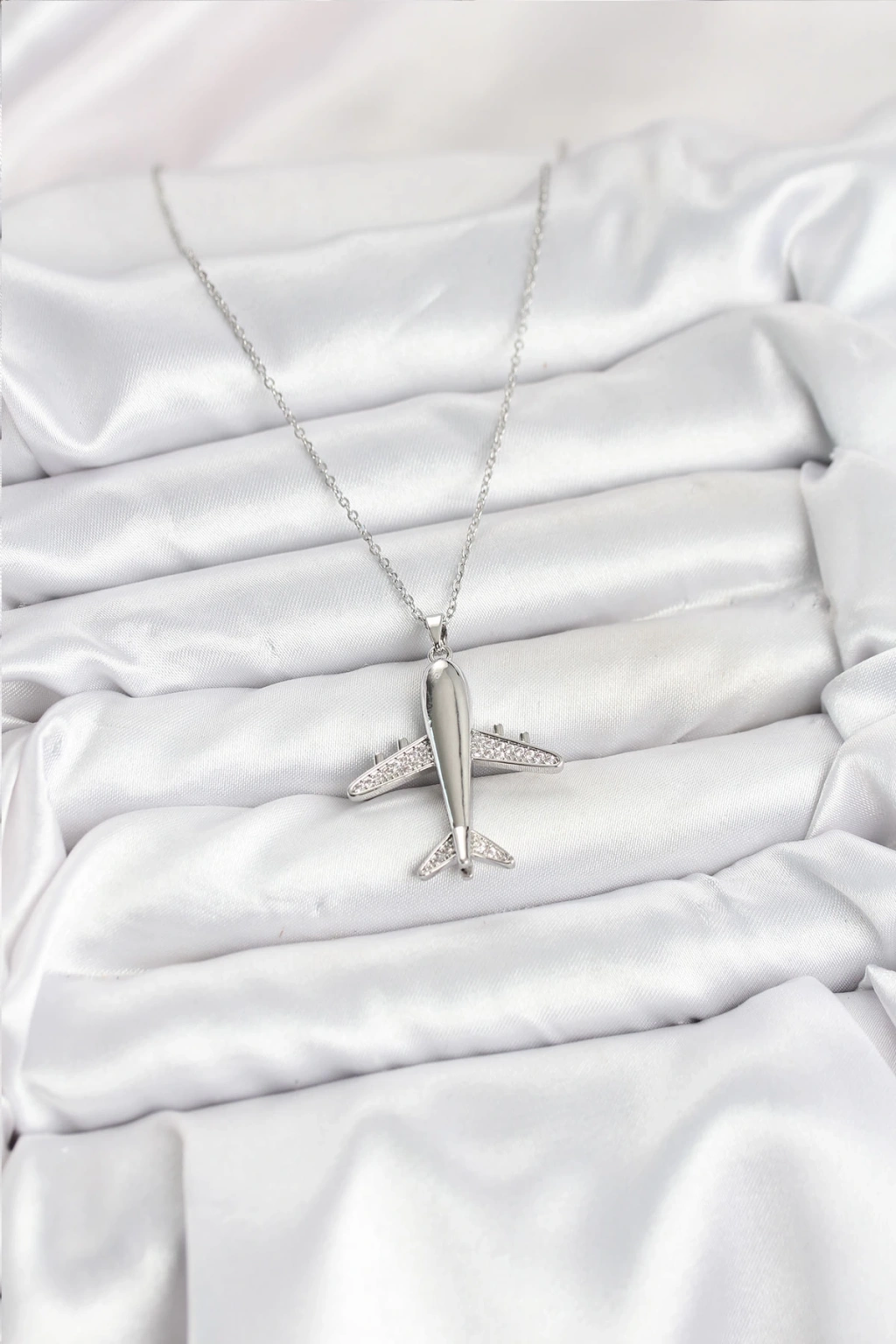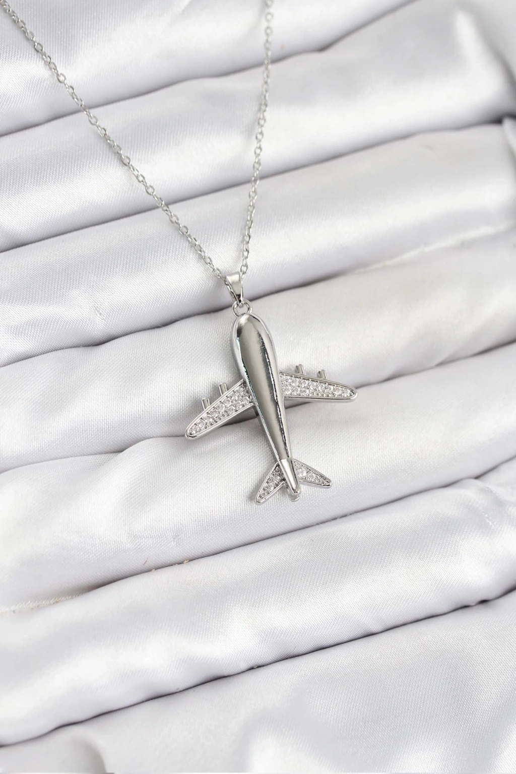 316L Çelik Zincir Gümüş Renk Uçak Model Kadın Kolye