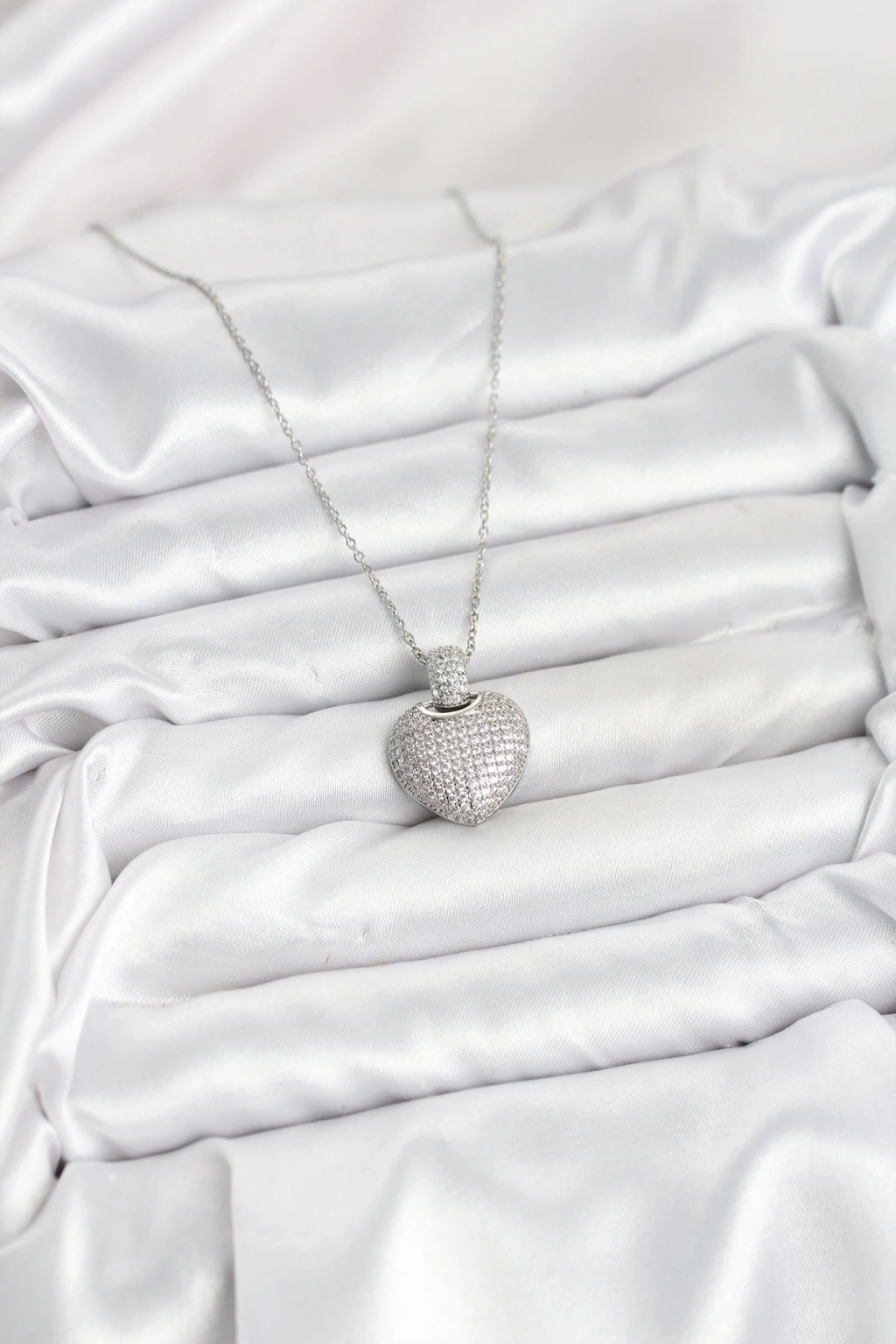 316L Çelik Zincir Gümüş Renk Zirkon Taşlı Kalpli Kadın Kolye