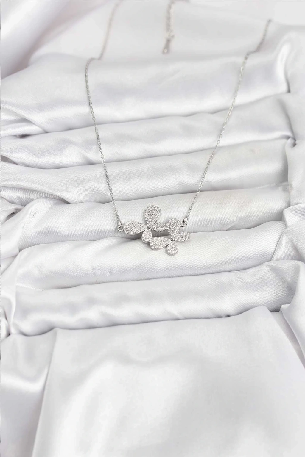 316L Çelik Zincir Gümüş Renk Zirkon Taşlı Kelebek Model Kadın Kolye