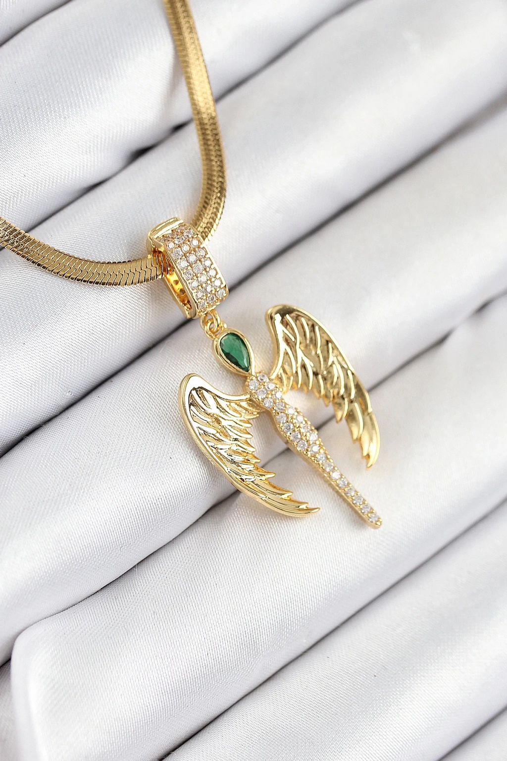 316L Çelik Zirkon Taşlı Melek Model Gold Renk Kadın Kolye