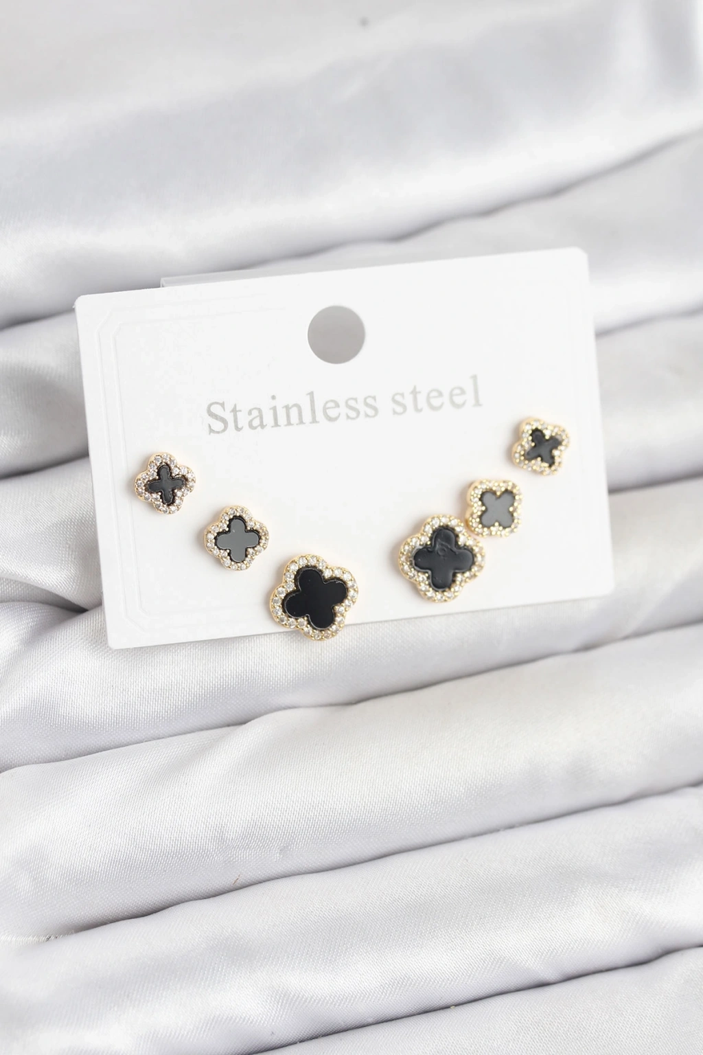 316L Çelik Zirkon Taşlı Yonca Model Kadın Küpe Seti