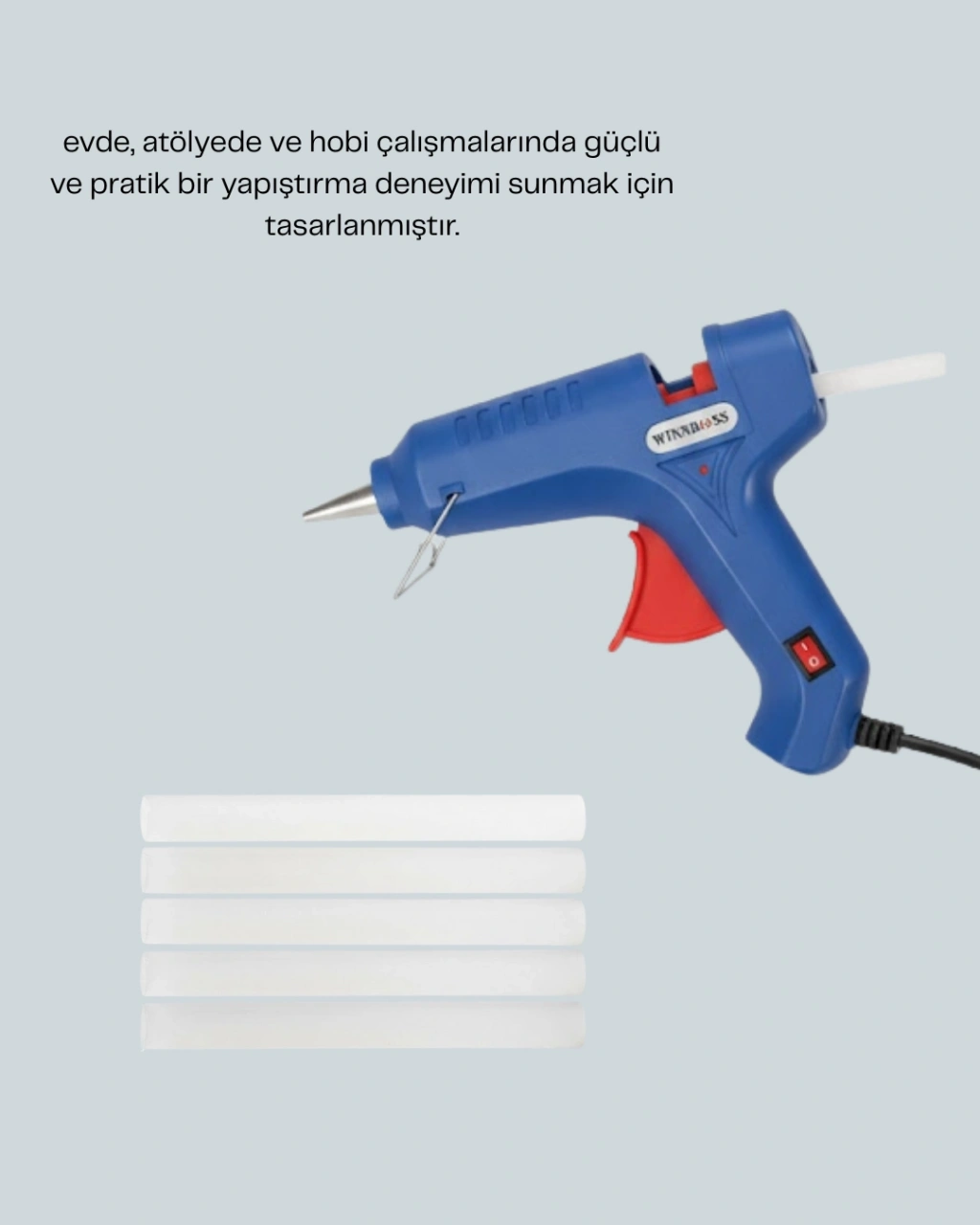 5 silikon hediyeli 40W sıcak silikon tabancası, ev ve hobi kullanımında vazgeçilmez bir yardımcıdır. Güçlü 40W motoru sayesinde silikon çubukları hızlıca eriterek zaman kazandırır. Paket içeriğinde yer alan 5 adet silikon, ürünü kullanıma hazır hale getirir.Ergonomik tasarımı sayesinde rahat kavrama sağlar ve uzun süreli çalışmalarda bile konfor sunar. Metal uç yapısı, düzgün ve temiz yapıştırmalar elde etmenizi sağlar.Sıcak silikon tabancası; tamirat, süsleme, el işi ve hobi projelerinde geniş kullanım alanına sahiptir. Çeşitli yüzeylerle uyumlu yapısı sayesinde çok yönlü kullanım imkânı sunar. Ev ortamında güvenle kullanılabilir.Isıya dayanıklı dış kasa, güvenli kullanım sağlar. Açma kapama düğmesi ile kontrol tamamen kullanıcıya aittir. Kompakt yapısı sayesinde kolay taşınır ve saklanır.5 silikon hediyeli bu sıcak silikon tabancası, pratikliği ve kullanım kolaylığı ile günlük işlerinizi zahmetsiz hale getirir.