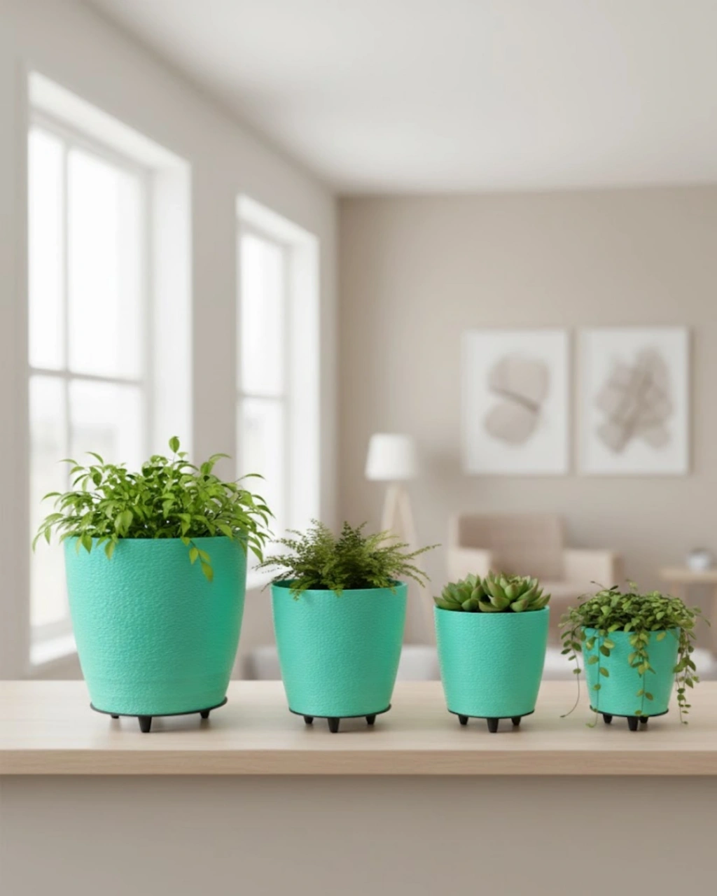 4’lü 3D Dekoratif Yeşil Vazo Takımı, dekorasyonda sadelik ve şıklığı bir araya getirir. 3D dokulu yüzeyi ve modern ayak detayı ile estetik bir görünüm sunar. Mint yeşili rengi mekana canlılık ve huzur katar.Hem iç hem dış mekan kullanımına uygundur. Şık ve zamansız tasarımı sayesinde uzun yıllar dekorasyonunuza eşlik eder.