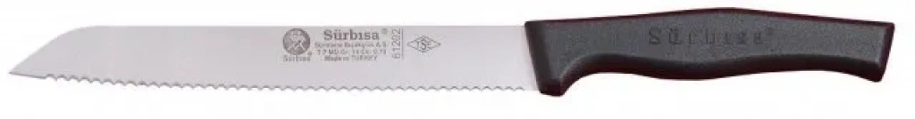 61202 - Sürmene Ekmek Bıçağı 19 cm, ekmek ve diğer gevrek yiyecekleri keserken güvenilir ve etkili bir performans sağlar. Yüksek kaliteli malzemeler ve ergonomik tasarımı ile mutfakta ihtiyaç duyduğunuz mükemmel araçlardan biridir.