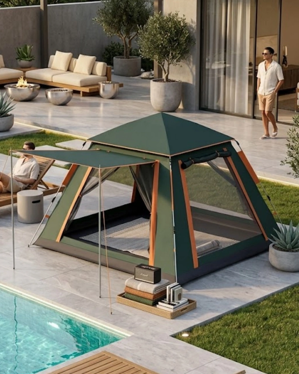Doğada geniş ve konforlu bir alan sunan bu kamp çadırı, pratik kullanımı ve dayanıklı yapısı ile dikkat çeker. Geniş iç hacmi sayesinde birden fazla kişinin rahatlıkla konaklayabileceği bir alan sunar.Güneşlikli tasarımı sayesinde dış mekanda ekstra alan sağlar. Otomatik kurulum sistemi sayesinde kolay kullanım sunar.Su geçirmez yapısı sayesinde yağmur ve nemden korur. Hava sirkülasyonu sağlayan yapısı ile ferah bir ortam sunar.Taşınabilir yapısı sayesinde her yere kolayca götürülebilir.