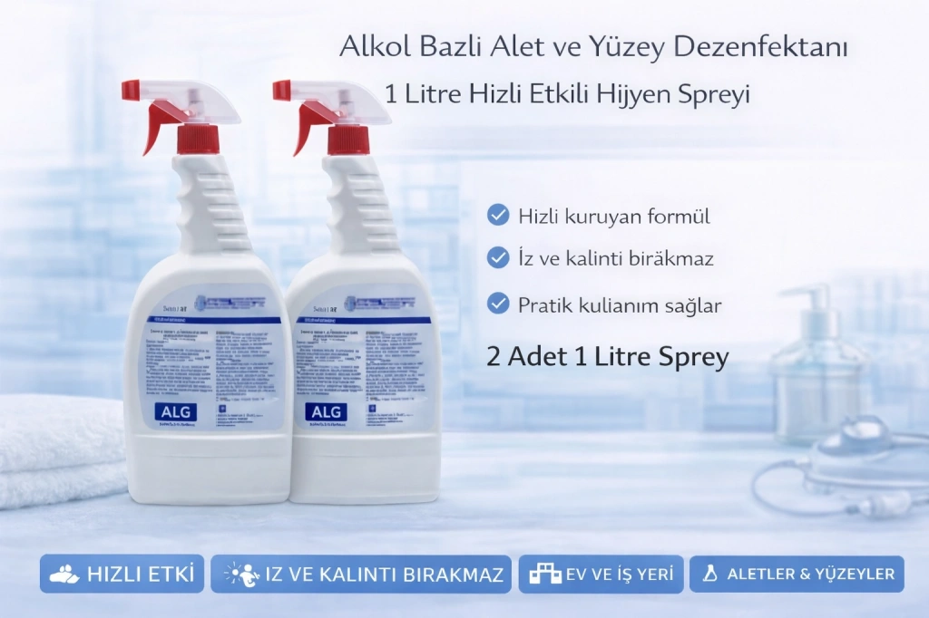 yüzey dezenfektanı, alkol bazlı dezenfektan, alet dezenfektanı, sprey dezenfektan, hijyen solüsyonu, yüzey temizleme dezenfektanı, medikal yüzey dezenfektanı, 1 litre dezenfektan, ekipman temizleyici, yüzey dezenfektanı 2 adet