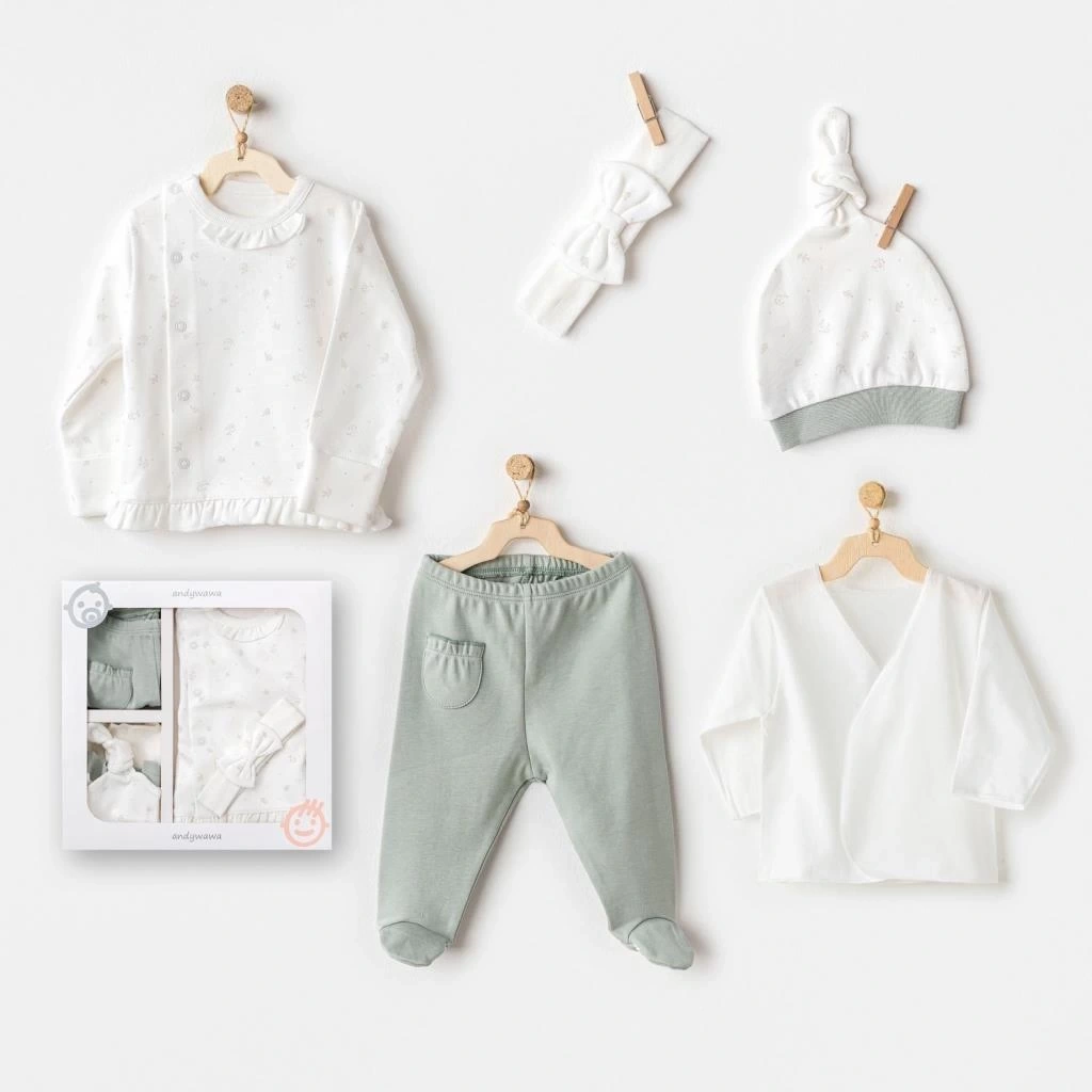 Ürünlerimiz bebeğinizin sağlığı düşünülerek birinci sınıf ham maddelerden üretilmiştir. Bebeğiniz için zararlı kimyasallar içermez. Azo-Free boya ve Nikel- Free aksesuarları ile uluslararası üretim teknikleri ve güvenlik standartlarına sahiptir. Benzer renklerle birlikte yıkayınız. Yüksek kalite standartları Oeko-Tex belgesi ile tescillenmiştir. Kumaş Özellikleri: %100 Pamuk. Paket İçeriği: 1 adet uzun kollu zıbın. 1 adet uzun kollu iç zıbın. 1 adet pantolon. 1 adet şapka. 1 adet fular. Yıkama Talimatları: 30°C sıcaklıkta yıkayınız. Çamaşır suyu kullanmayınız. Düşük sıcaklıkta ütüleyniz. Tambur kurutma yapılmaz.Ürün görselinde birden fazla renk ve çeşit olduğunda ta bulunan ve gönderilecek olan ürün için soru sor kısmından bizimle iletişime geçebilirsiniz