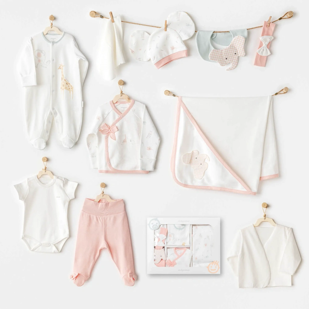Ürünlerimiz bebeğinizin sağlığı düşünülerek birinci sınıf ham maddelerden üretilmiştir. Bebeğiniz için zararlı kimyasallar içermez. Azo-Free boya ve Nikel- Free aksesuarları ile uluslararası üretim teknikleri ve güvenlik standartlarına sahiptir. Benzer renklerle birlikte yıkayınız. Kumaş Özellikleri: %100 Pamuk. Ürün İçeriği: 1 adet tulum. 1 adet body. 1 adet iç zıbın. 1 adet dış zıbın. 1 adet patikli pantolon. 1 adet battaniye. 1 adet şapka. 1 adet fular. 1 adet bandana. 1 adet ağız temizleme bezi. Yıkama Talimatları: 30°C sıcaklıkta yıkayınız. Çamaşır suyu kullanmayınız. Düşük sıcaklıkta ütüleyniz. Tambur kurutma yapılmaz.Ürün görselinde birden fazla renk ve çeşit olduğunda ta bulunan ve gönderilecek olan ürün için soru sor kısmından bizimle iletişime geçebilirsiniz