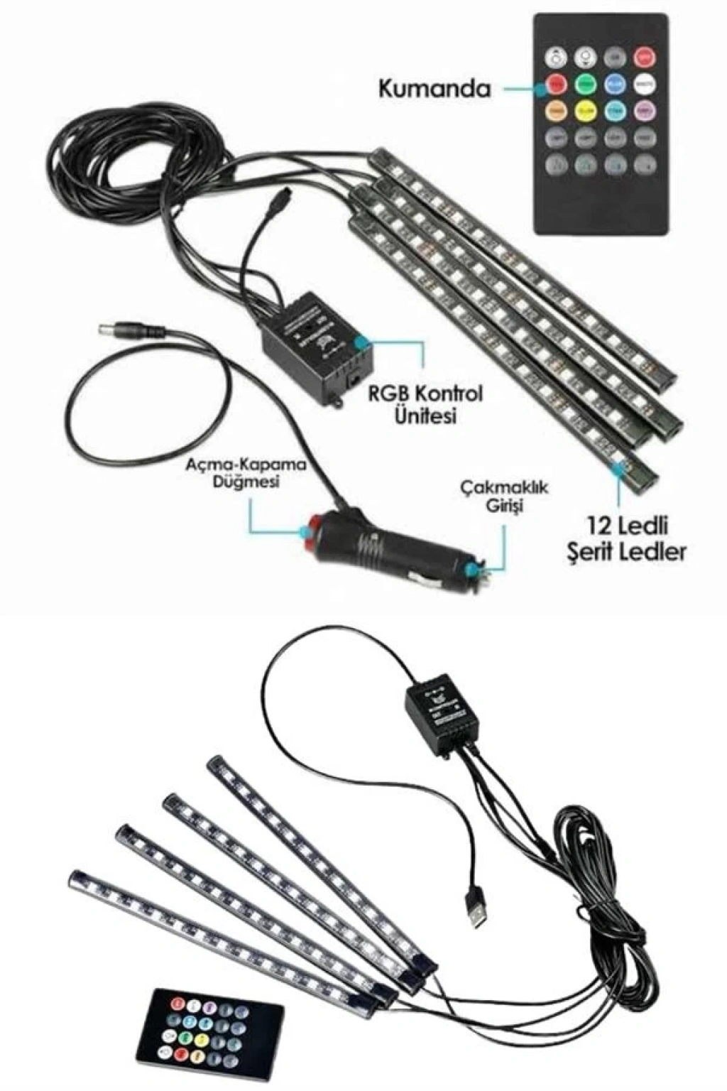 Araç İçi Ayak Altı Led 12 Led Işık Sese Müziğe Duyarlı RGB Işıklı Aydınlatma Seti