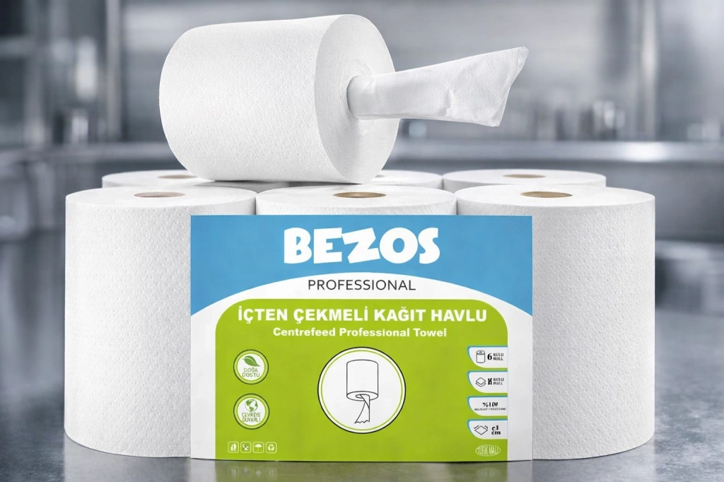 Bezos Professional İçten Çekmeli Kağıt Havlu 2 Koli | 12 Rulo | Endüstriyel Kullanım Profesyonel kullanım için üretildi, günlük yoğunluğa meydan okur. Bezos Professional içten çekmeli kağıt havlu, işletmelerin hızına ayak uydurmak için tasarlandı. Restoran, kafe, mutfak, ofis, temizlik alanları ve yoğun kullanım gerektiren tüm profesyonel ortamlarda tek tek kontrollü kullanım sağlar, israfı azaltır. Neden Bezos Professional?