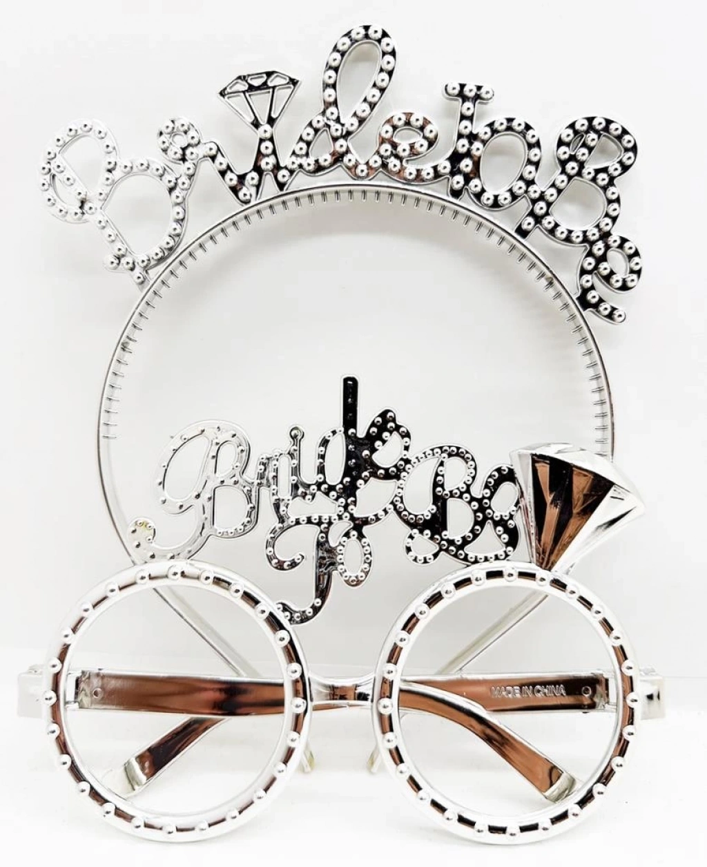 Bride To Be Yazılı Taç ve Bride To Be Yazılı Gözlük Seti Gümüş Renk, bekarlığa veda partileri ve diğer özel günler için mükemmel bir aksesuardır. Taç ve gözlük plastikten yapılmış ve altın rengindedir. Taçta "Bride To Be" yazmaktadır ve gözlüklerde de "Bride To Be" yazmaktadır.