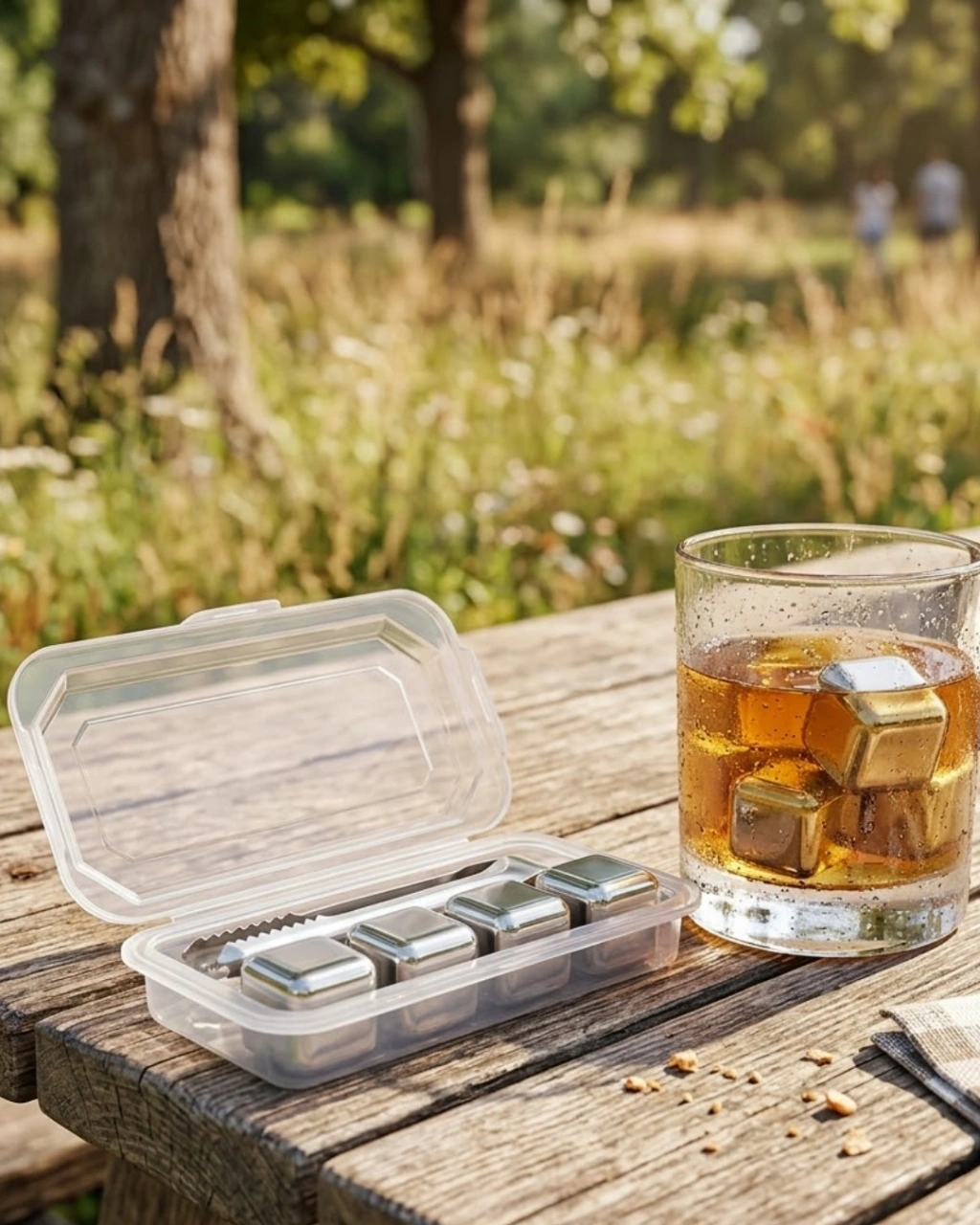 Maşalı çelik buz küpleri seti, içeceklerini kaliteli şekilde tüketmek isteyenler için tasarlanmıştır. Erimeyen yapısı sayesinde içeceğinize su karışmaz. Bu da içeceğin orijinal tadının korunmasını sağlar.Set içerisinde 4 adet metal buz küpü, maşa ve saklama kutusu bulunmaktadır. Paslanmaz çelik dış yüzeyi sağlamdır ve uzun ömürlüdür. Düzenli kullanım için idealdir.Kullanımı son derece kolaydır. Küpleri dondurucuya koyun, yeterince soğuduktan sonra içeceğinize ekleyin. Kullanım sonrasında temizleyerek yeniden kullanabilirsiniz.Modern tasarımı ve şık görünümü sayesinde sunumlarda dikkat çeker. Hediye olarak da tercih edilebilecek kullanışlı bir üründür. Evde ya da iş yerinde rahatlıkla kullanılabilir.Şık ve modern tasarım