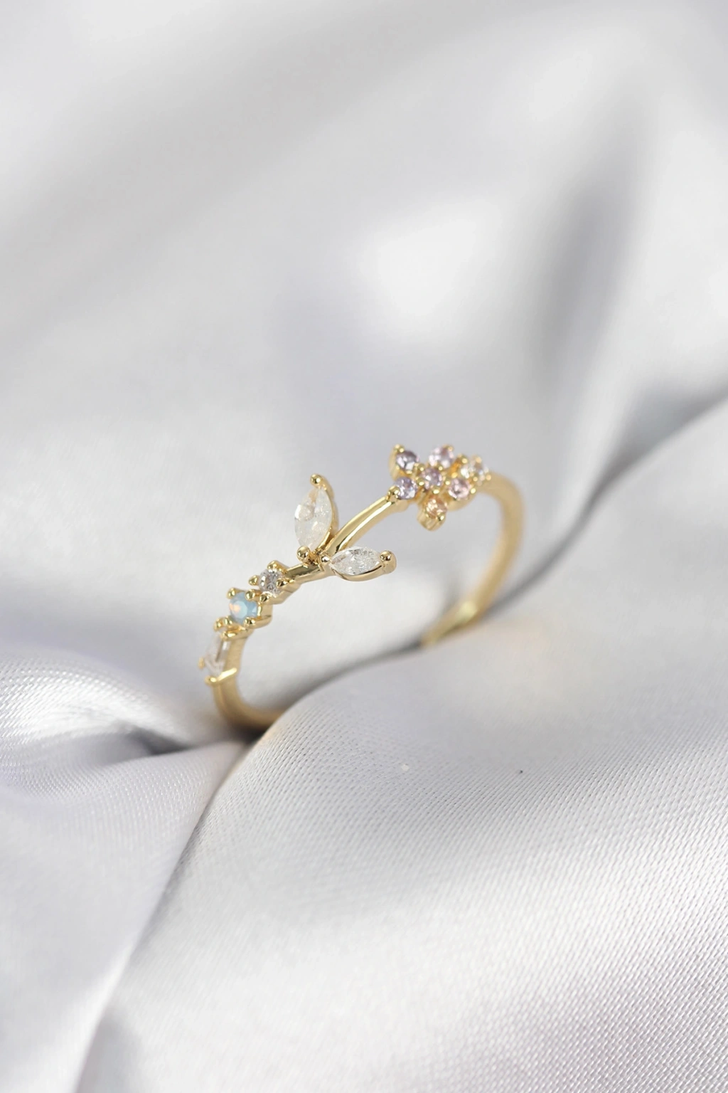 Çiçek Model Zirkon Taşlı Gold Renk Kadın Yüzük