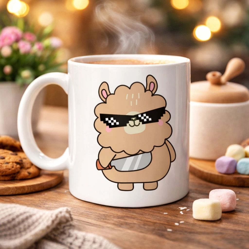 Kupanın üzerindeki alpaka figürü; rahat tavrı, cool gözlüğü ve özgüvenli duruşuyla “keyfine bak” mesajı veriyor. Esprili ama tatlı tasarımı sayesinde hem güldürüyor hem de pozitif bir hava katıyor. Günlük stresin arasında küçük bir tebessüm arayanlar için birebir!