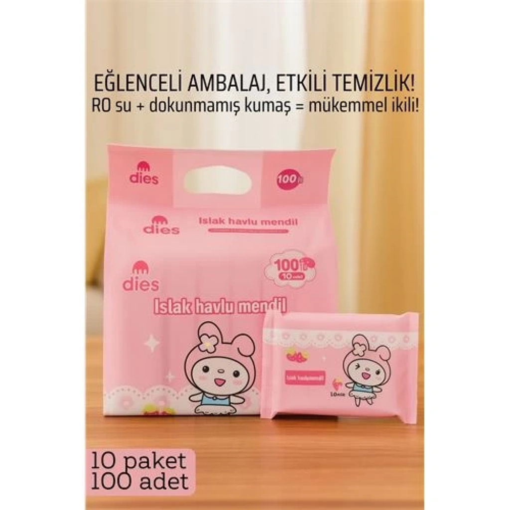 Dies Islak Mendil -RO Saf Su & Dokunmamış Kumaşlı, 100 Yaprak Temizlik Keyfi PEMBE