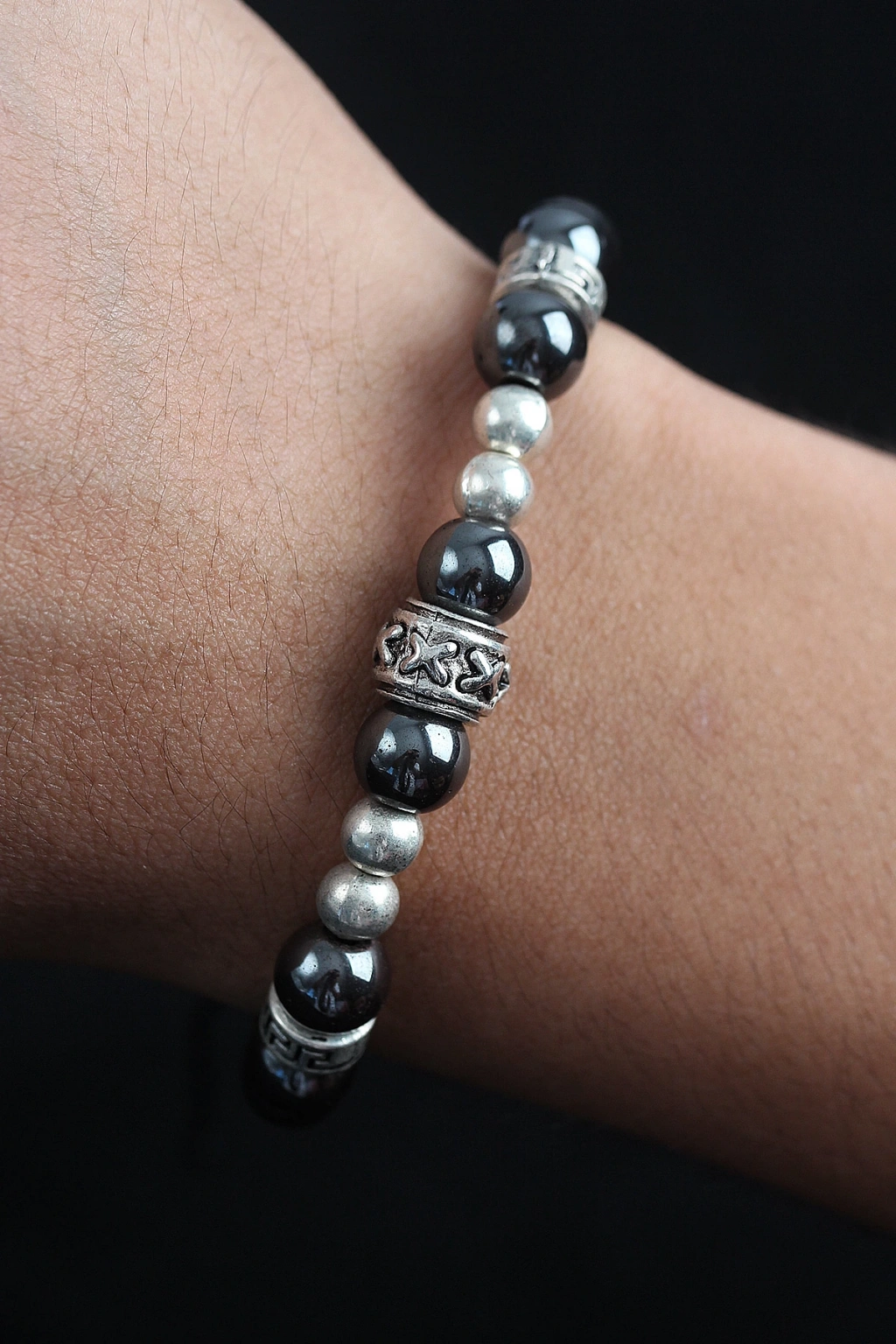 Doğal Taş X Model Antrasit Renk Asansörlü Erkek Bileklik