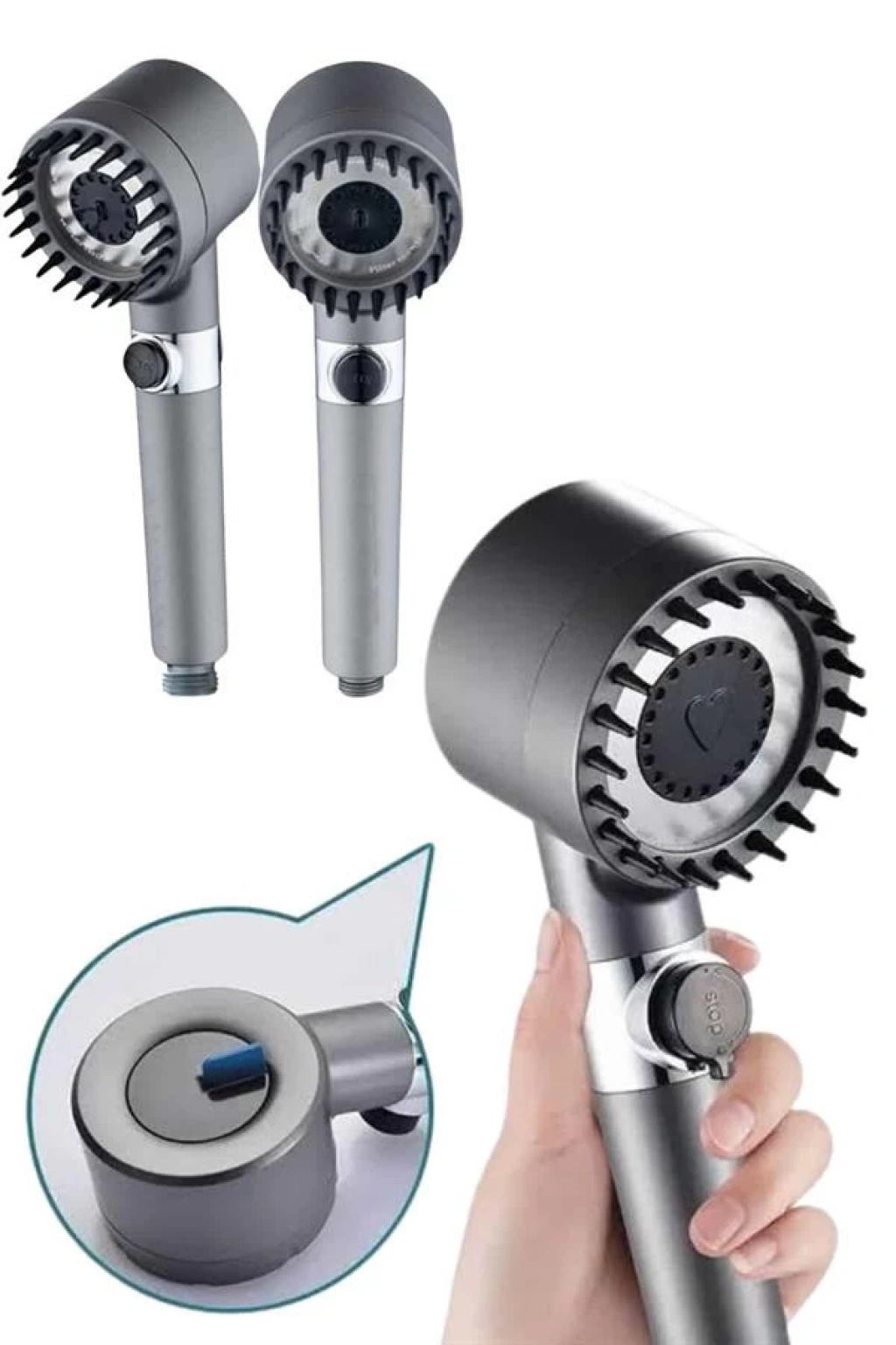 Krom kaplama malzemesiyle üretilmiş olan bu duş başlığı, hem estetik görünümüyle banyonuza şıklık katarken hem de uzun ömürlü ve dayanıklı bir kullanım sunar. Paslanmaya karşı dirençli yapısı sayesinde ilk günkü parlaklığını uzun süre korur ve günlük kullanımda yüksek performans sağlar. Üç farklı masaj modu sayesinde duş keyfinizi bambaşka bir seviyeye taşıyan bu ürün; rahatlatıcı, canlandırıcı ve derin doku masajı seçenekleriyle kişisel konforunuzu ön plana çıkarır. Günün stresini üzerinizden atmak veya güne zinde başlamak için ihtiyacınıza göre kolayca modlar arasında geçiş yapabilirsiniz.Kullanıcı dostu tasarımı sayesinde kurulumu oldukça basittir; ekstra bir ekipmana gerek kalmadan dakikalar içinde monte edilebilir. Ergonomik tutuşu ve su tasarrufu sağlayan yapısıyla hem çevre dostu hem de ekonomik bir kullanım sunar. Pratik kullanımı sayesinde her banyoya kolaylıkla entegre edilebilen bu duş başlığı, fonksiyonel ve şık bir banyo aksesuarı arayanlar için ideal bir seçimdir.