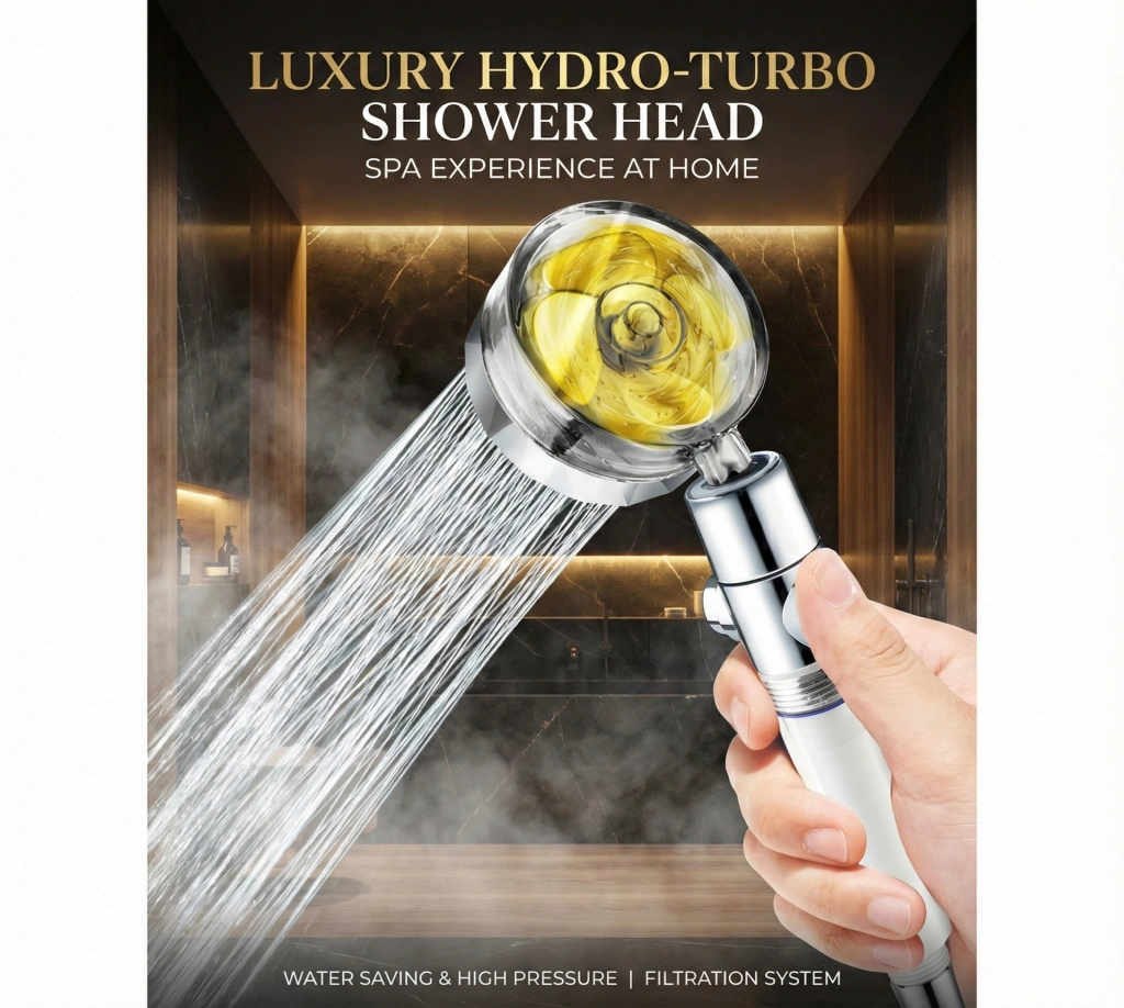 Duş Başlığı Turbo Pervaneli Serinletici Tasarım Start Stop Tuşu Duş Başlığı 360 Derece Döner