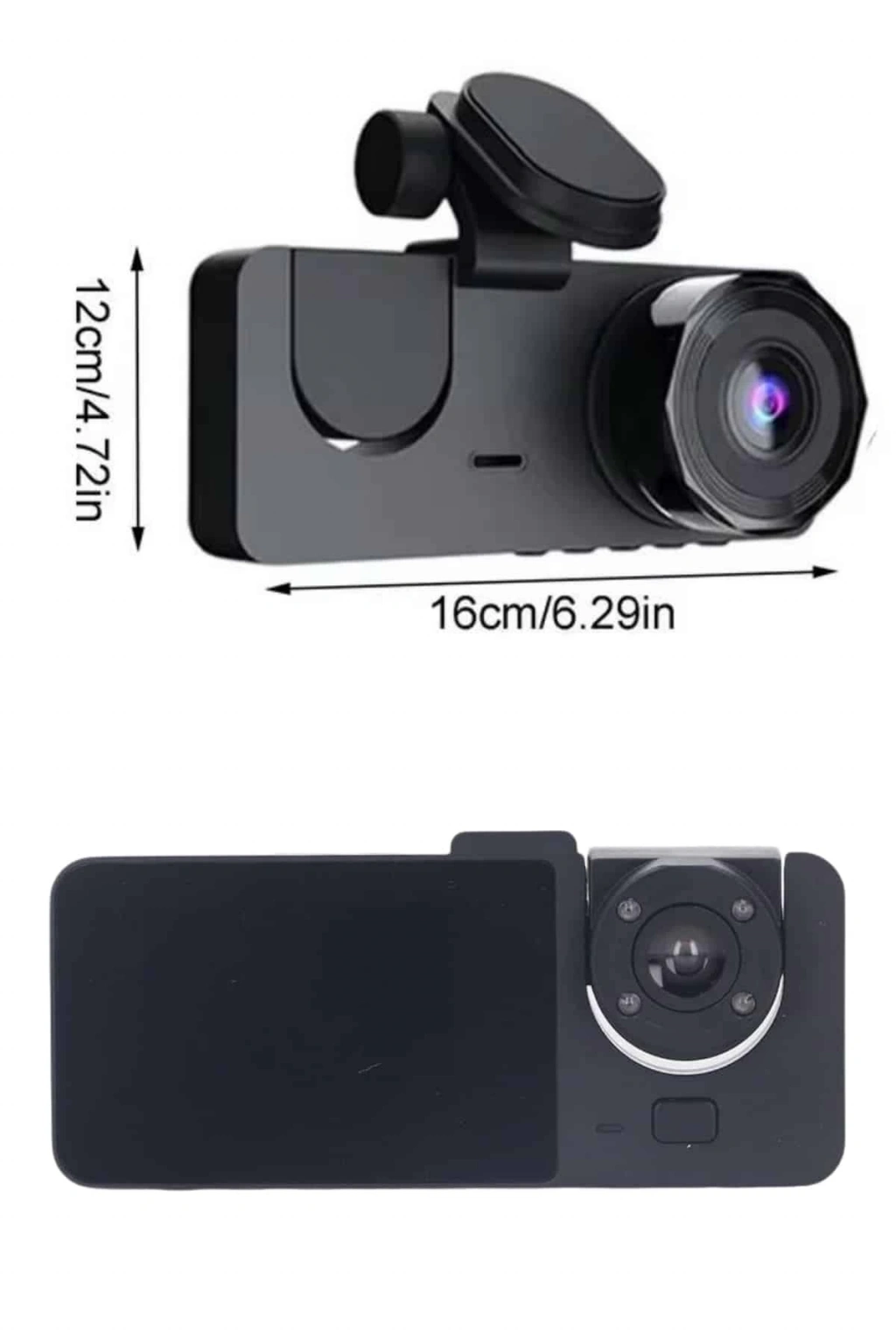 Bu çok yönlü 3 kameralı araç içi kayıt cihazı, sürüş sırasında kapsamlı güvenlik ve net görüntüleme deneyimi sunmak üzere tasarlanmıştır. 1080P Full HD ön kamerası, trafikte yaşanan tüm anları yüksek çözünürlükle kaydederken; 720P arka kamera ve VGA iç kamera ile aracın her yönünü aynı anda görüntüleme imkanı sağlar. Özellikle geniş açılı lensler sayesinde kör nokta riski en aza indirilmiş olur.Cihazın entegre G-Sensörü, ani çarpışma, sarsıntı ya da hareket anlarını otomatik olarak algılayarak ilgili görüntüleri özel olarak kaydeder ve bu önemli kayıtların üzerine yazılmasını engeller. Ayrıca park modu sayesinde, araç çalışmıyor olsa bile hareket algılandığında otomatik olarak kayıt başlatılır, böylece aracınızı her zaman güvende tutabilirsiniz.Gece görüş desteği, düşük ışıklı ortamlarda bile net ve kaliteli video kayıtları yapılmasını sağlarken, gelişmiş H.264 video sıkıştırma teknolojisi sayesinde dosyalar daha az yer kaplar, daha uzun süreli kayıtlar mümkün hale gelir. 2 inç IPS ekranı ile canlı görüntü takibi yapabilir, daha önce kaydedilen görüntülere kolayca erişebilirsiniz.170° geniş açılı ön kamerası ve 120° iç kamera açısıyla trafikte ya da park halinde hiçbir detayı kaçırmazsınız. 256 GB'a kadar Micro SD kart desteği sunan sistem, uzun kayıt süreleri için ideal bir depolama kapasitesi sağlar. Dahili 350 mAh bataryası, kısa süreli enerji kesintilerinde bile cihazın çalışmaya devam etmesini sağlar.Ergonomik tasarımı sayesinde aracın görüş açısını engellemez ve montajı oldukça kolaydır. Ön, arka ve iç mekanları aynı anda gözetleyerek hem sürücüler hem de araç sahipleri için tam kapsamlı bir güvenlik çözümü sunar. Hem şehir içi kullanımda hem de uzun yolculuklarda güvenliğinizi üst seviyeye taşır.