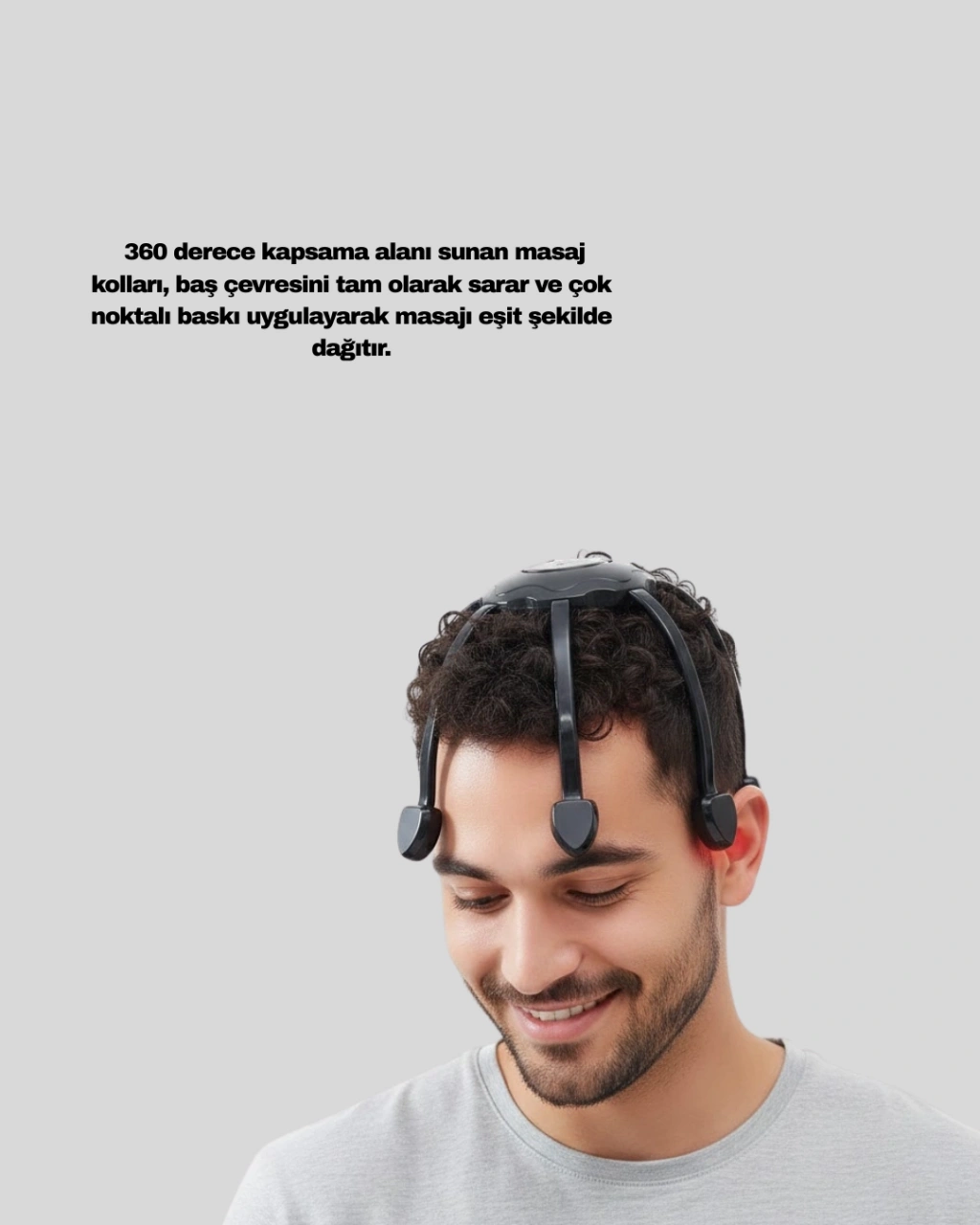 Elektrikli saç derisi masaj aleti, yoğun tempolu yaşamın getirdiği stres ve gerginliği azaltmak isteyen kullanıcılar için özel olarak tasarlanmıştır. Çok noktalı yapıya sahip 8 kollu masaj sistemi sayesinde saç derisinin tamamını kapsayan dengeli bir masaj deneyimi sunar. Titreşimli başlıklar, saç derisine eşit basınç uygulayarak gün boyunca biriken gerginliği azaltmaya yardımcı olur.360 derece kapsama sağlayan esnek masaj kolları, baş çevresini sararak tek noktaya değil tüm saç derisine etki eder. Bu sayede masaj hissi daha homojen ve konforlu hale gelir. Üç farklı masaj modu sayesinde kullanıcılar ihtiyacına göre masaj seviyesini kolayca seçebilir. Hafif mod rahatlatıcı bir etki sunarken, orta mod günlük stresin azalmasına yardımcı olur. Yoğun mod ise daha güçlü titreşimlerle derin bir rahatlama hissi sağlar.USB şarjlı tasarımı sayesinde kablo karmaşasına gerek kalmadan pratik kullanım imkânı sunar. Sessiz çalışan motoru sayesinde gece saatlerinde bile çevreyi rahatsız etmeden kullanılabilir. Hafif ve kompakt yapısı sayesinde evde, ofiste veya seyahat sırasında rahatlıkla taşınabilir.Düzenli kullanımda saç derisinde kan dolaşımını destekleyerek daha canlı ve ferah bir his oluşmasına katkı sağlar. Uzun süre bilgisayar başında kalanlar, stresli günlerin ardından rahatlamak isteyenler ve uyku öncesi gevşeme rutini oluşturmak isteyenler için ideal bir yardımcıdır. Elektrikli saç derisi masaj aleti, günlük yaşamın temposuna kısa ama etkili bir mola vermek isteyenler için pratik ve konforlu bir çözümdür.