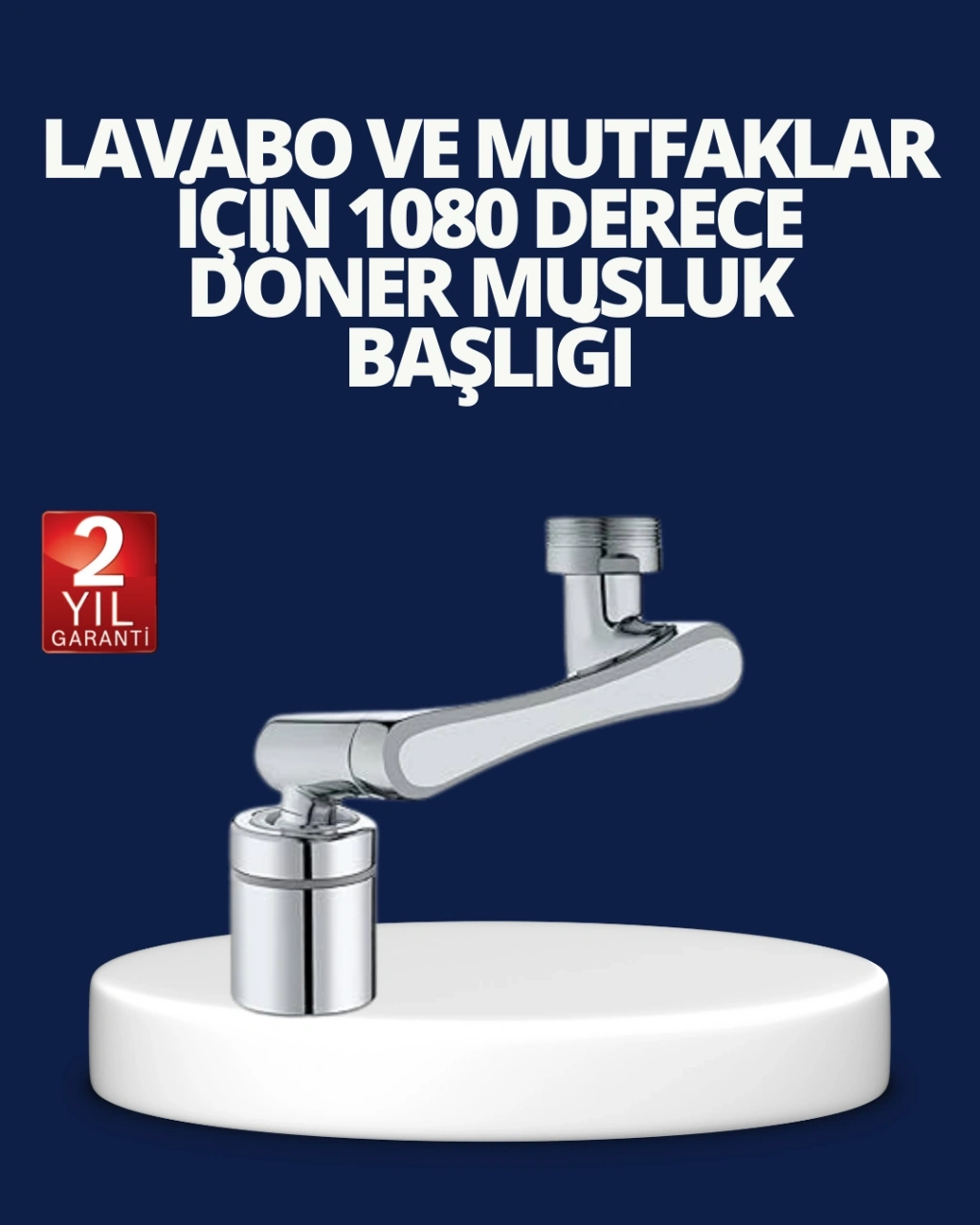Bu esnek 1080° musluk başlığı, üç eklemli robotik tasarımıyla suyu dilediğiniz açıya yönlendirerek günlük işlemleri çok daha kolay hale getirir. Hareketli yapısı sayesinde klasik musluklara göre çok daha geniş bir kullanım alanı sunar. Lavabonun ulaşılması zor bölgelerine erişmek artık zahmetsizdir.Başlık, iki işlevsel su modu içerir: Köpük Akışı, yumuşak ve geniş bir akış sunarak hassas kullanım gerektiren işlemler için idealdir. Güçlü Sprey Akışı ise yüksek basınçlı temizleme gücüyle kirleri ve yağ kalıntılarını rahatlıkla temizler. Günlük kullanım sırasında ihtiyaç duyduğunuz moda tek hareketle geçebilirsiniz.Su tasarrufu destekleyen iç yapısı, gereksiz harcamayı azaltır ve akışı optimize eder. Böylece temizlik performansından ödün vermeden daha verimli su kullanımı sağlar.Ürün, sebze–meyve durulama, tencere-bardak temizliği, lavabo köşelerine erişim, yüz yıkama ve el temizliği gibi pek çok işlemde üstün konfor sunar. Çocuklu aileler, yaşlı kullanıcılar ve yoğun mutfak trafiği olan evler için oldukça avantajlıdır.Takması son derece kolaydır. Standart musluklarla uyumludur ve adaptörleri sayesinde farklı sistemlere de dakikalar içinde bağlanabilir.Estetik ve modern görünümüyle hem mutfak hem banyo lavabolarına şıklık ve fonksiyonellik kazandırır.