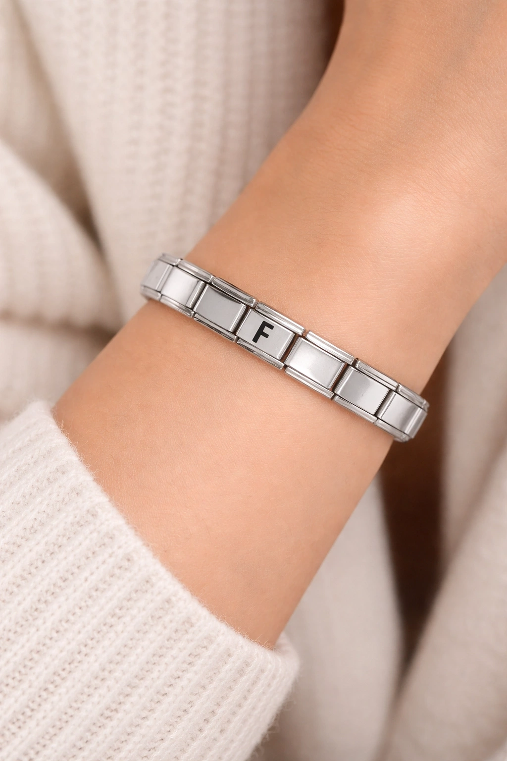 F Harfli Çelik Bileklik – Kişiye Özel Baş Harf Bileklik – Paslanmaz Çelik Şık ve Zarif Kadın Bileklik Bazen tek bir harf, koca bir anlam taşır… İsminizin baş harfi, sevdiğiniz birinin adı ya da sizin için özel bir anlamı olan o harf artık bileğinizde ?? Paslanmaz çelikten üretilen harfli bileklik, sade ama dikkat çekici tasarımıyla hem günlük kullanımda hem de özel günlerde şıklığınızı tamamlar. Esnek yapısı sayesinde bileğinize kolayca uyum sağlar, gün boyu konforlu bir kullanım sunar. Minimal ve zamansız tasarımı sayesinde tek başına kullanılabileceği gibi diğer bilekliklerle birlikte kombinlenerek de harika bir görünüm oluşturur. Kendiniz için şık bir dokunuş, sevdikleriniz için ise anlamlı ve özel bir hediye alternatifi ?