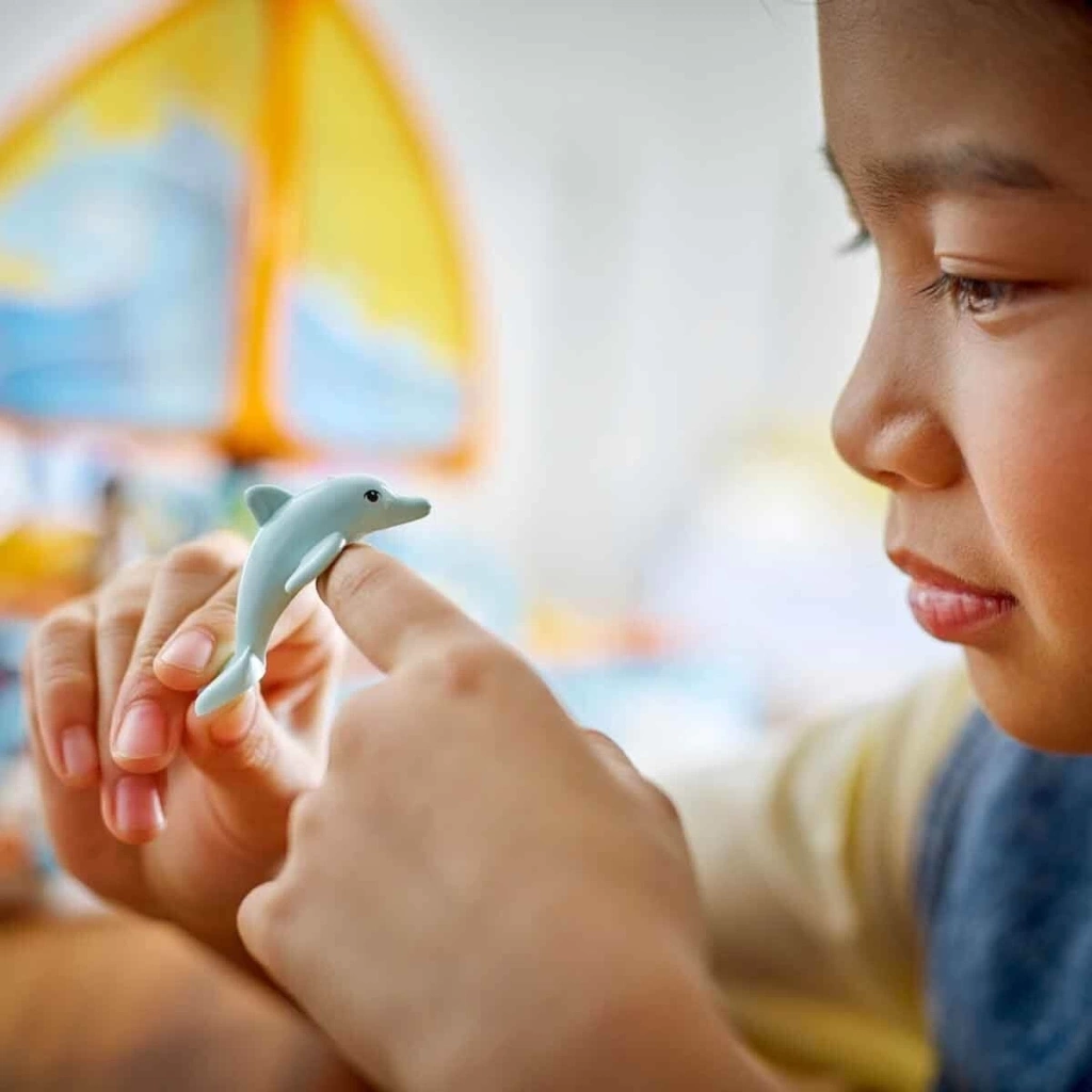 oyunlar için 4 mini bebek, 2 yunus ve aksesuarlar içerir.