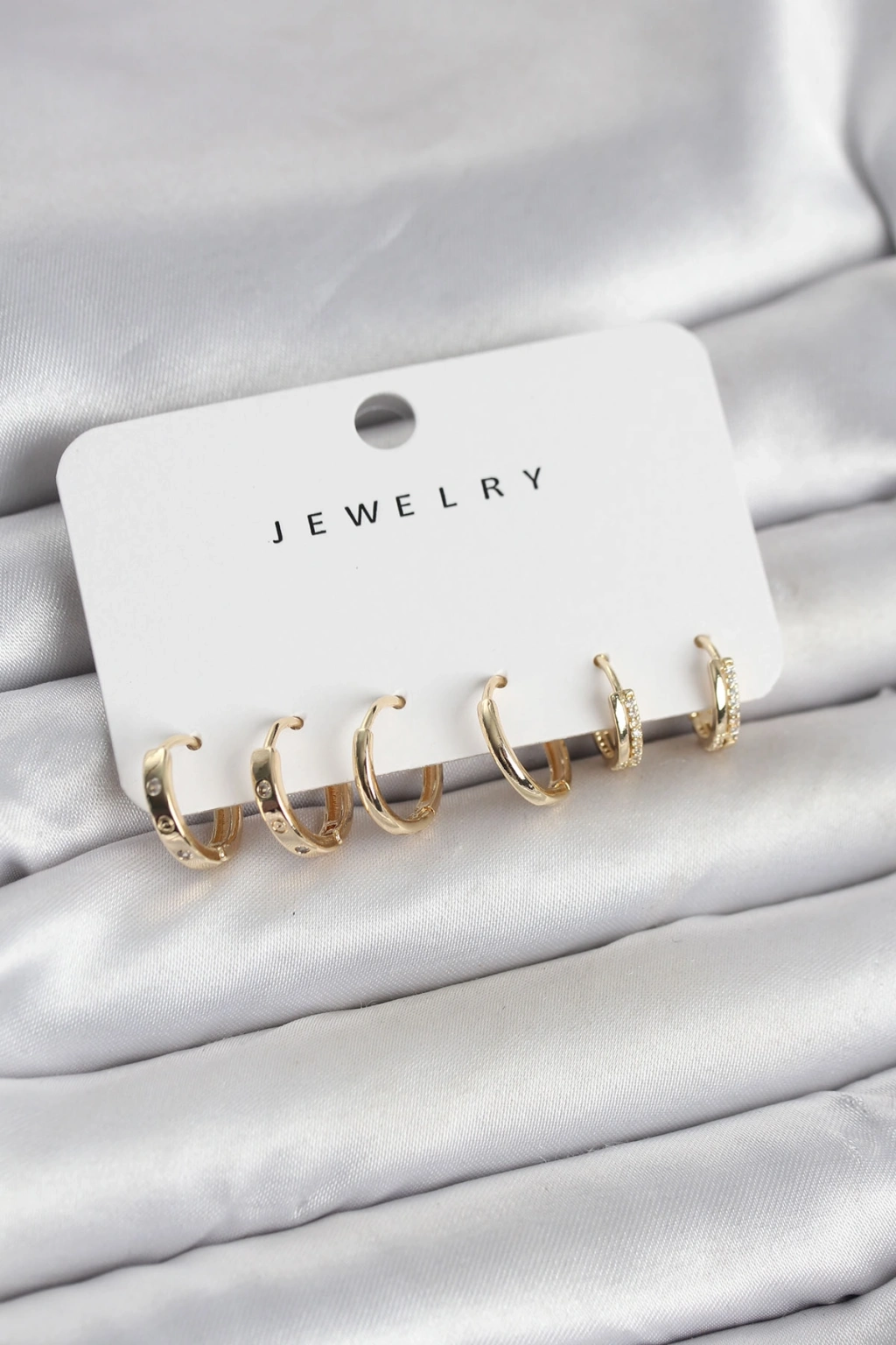 Gold Renk Pirinç 3 Çift Kadın Küpe Seti