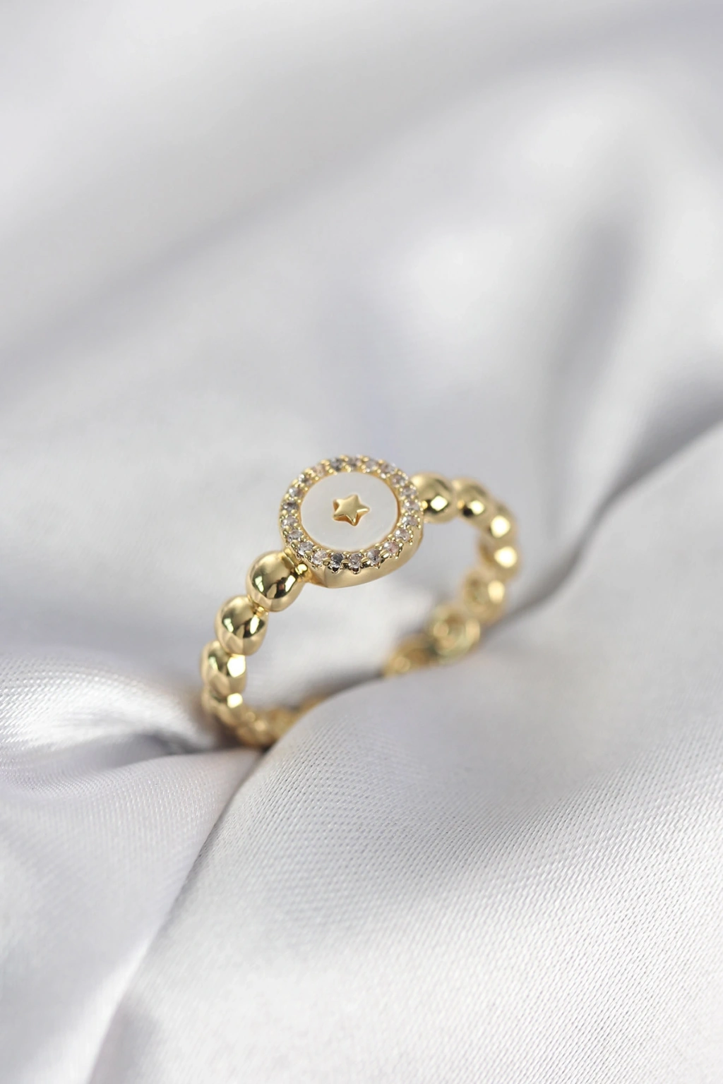 Gold Renk Sedefli Yıldız Model Zirkon Taşlı Kadın Yüzük