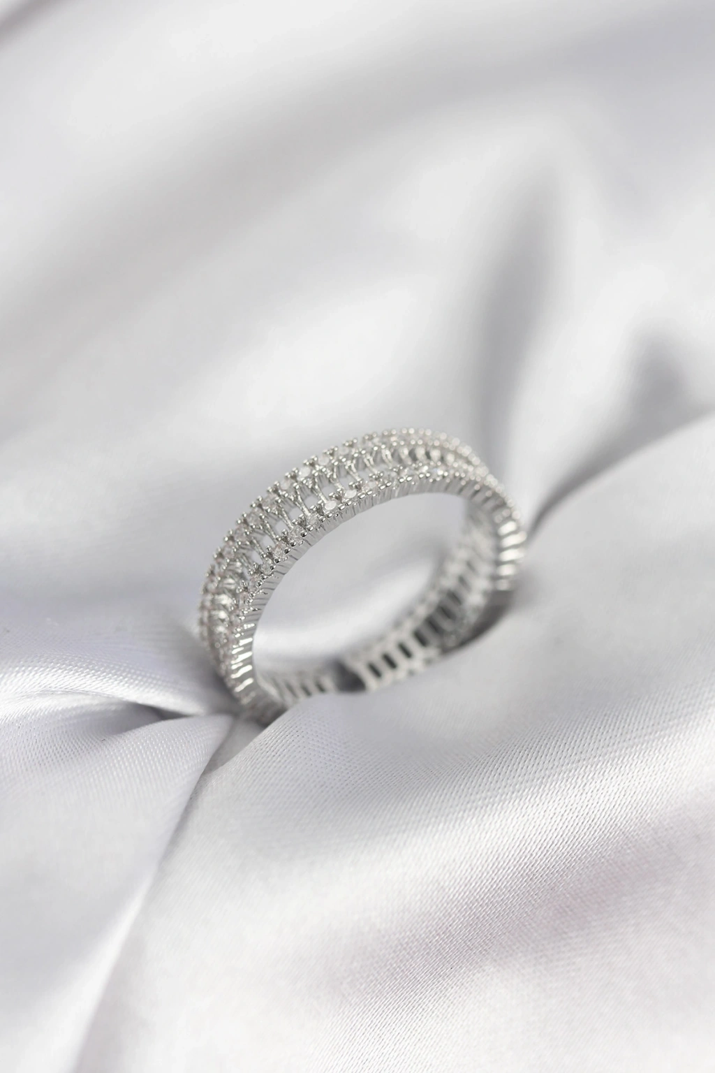 Gümüş Renk Minimal Zirkon Taşlı Kadın Yüzük