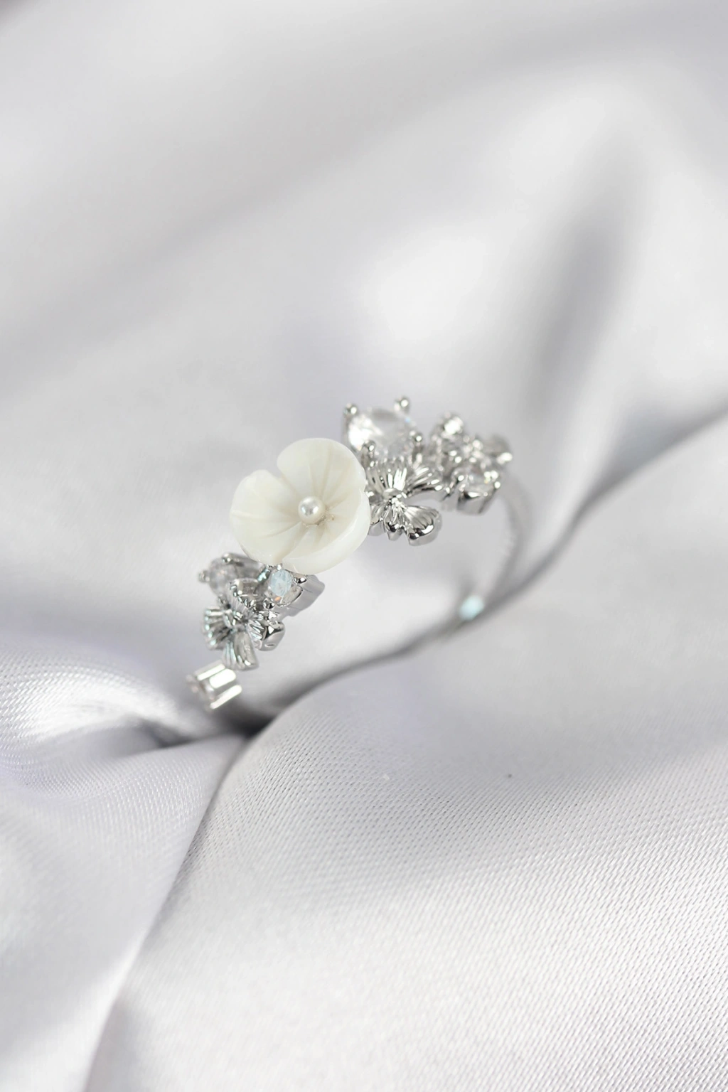 Gümüş Renk Pirinç Çiçek Model Zirkon Taşlı Kadın Yüzük