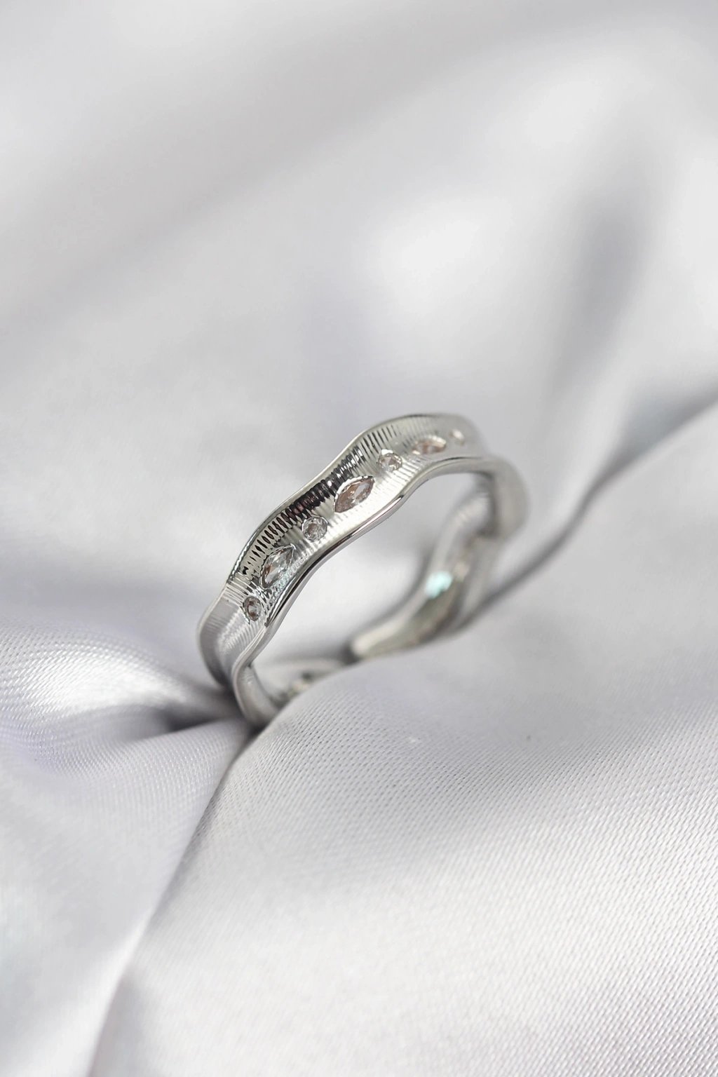Gümüş Renk Su Damlası Model Zirkon Taşlı Kadın Yüzük