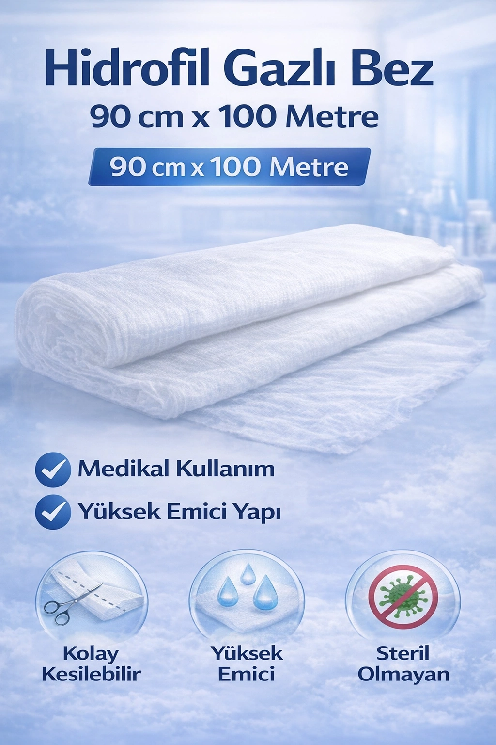 hidrofil gazlı bez, gazlı bez rulo, 90 cm gazlı bez, 100 metre gazlı bez, medikal gazlı bez, pansuman bezi, emici gazlı bez, pamuk gazlı bez, yara temizleme bezi, sağlık gazlı bez, hastane gazlı bez, rulo gazlı bez, steril olmayan gazlı bez