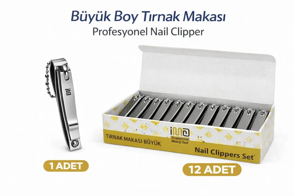 İMA Büyük Boy Tırnak Makası Profesyonel Nail Clipper 1 Adet Profesyonel büyük boy tırnak makası, el ve ayak tırnak bakımında güçlü ve düzgün kesim sağlar. Keskin paslanmaz çelik ağız yapısı sayesinde kalın ve sert tırnaklarda dahi etkili performans sunar. Ergonomik tasarımı ile rahat kavrama sağlar ve kontrollü kesim imkanı verir. Ürün 2 farklı varyasyon ile sunulmaktadır: • 1 Adet: Kişisel kullanım için ideal ve ekonomik seçenek. Ürün Özellikleri: