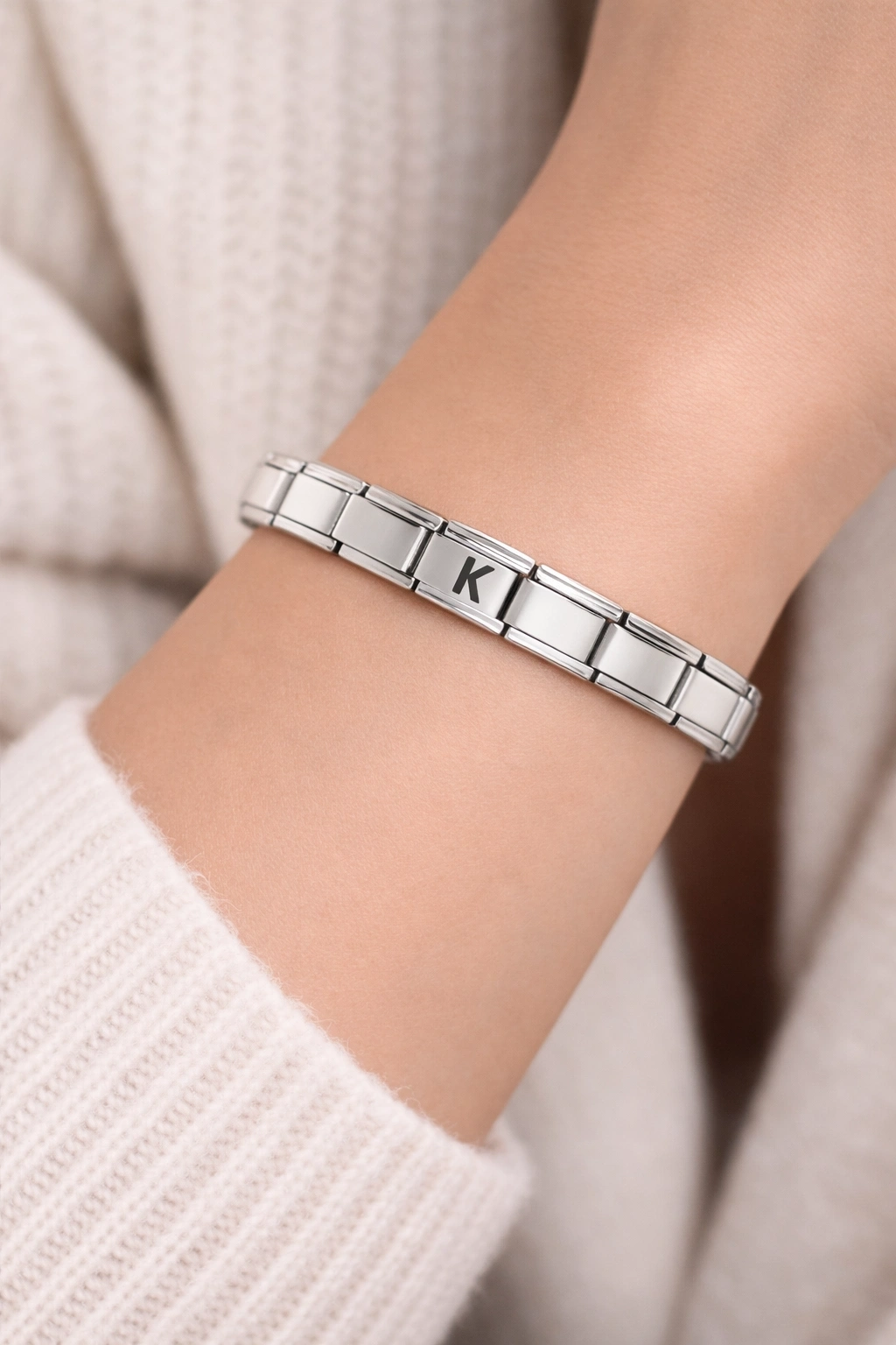 K Harfli Çelik Bileklik – Kişiye Özel Baş Harf Bileklik – Paslanmaz Çelik Zarif Bileklik Bazı harfler, sadece bir harf değildir… Bir ismi, bir hatırayı ya da kalbinize dokunan özel bir anlamı temsil eder ? K harfli çelik bileklik, zarif ve sade tasarımıyla stilinize kişisel bir dokunuş katar. Paslanmaz çelikten üretilen bu bileklik, kararma yapmayan yapısı sayesinde uzun süre ilk günkü parlaklığını korur. Esnek formu sayesinde bileğinize kolayca uyum sağlar ve gün boyu konforlu bir kullanım sunar. Minimal tasarımıyla tek başına kullanıldığında zarif bir şıklık yaratır; saat veya farklı bilekliklerle kombinlendiğinde ise modern ve dikkat çekici bir görünüm elde edilir. Kendiniz için anlamlı bir aksesuar ya da sevdikleriniz için kişiye özel ve duygusal bir hediye arıyorsanız, K harfli bileklik tam size göre ??