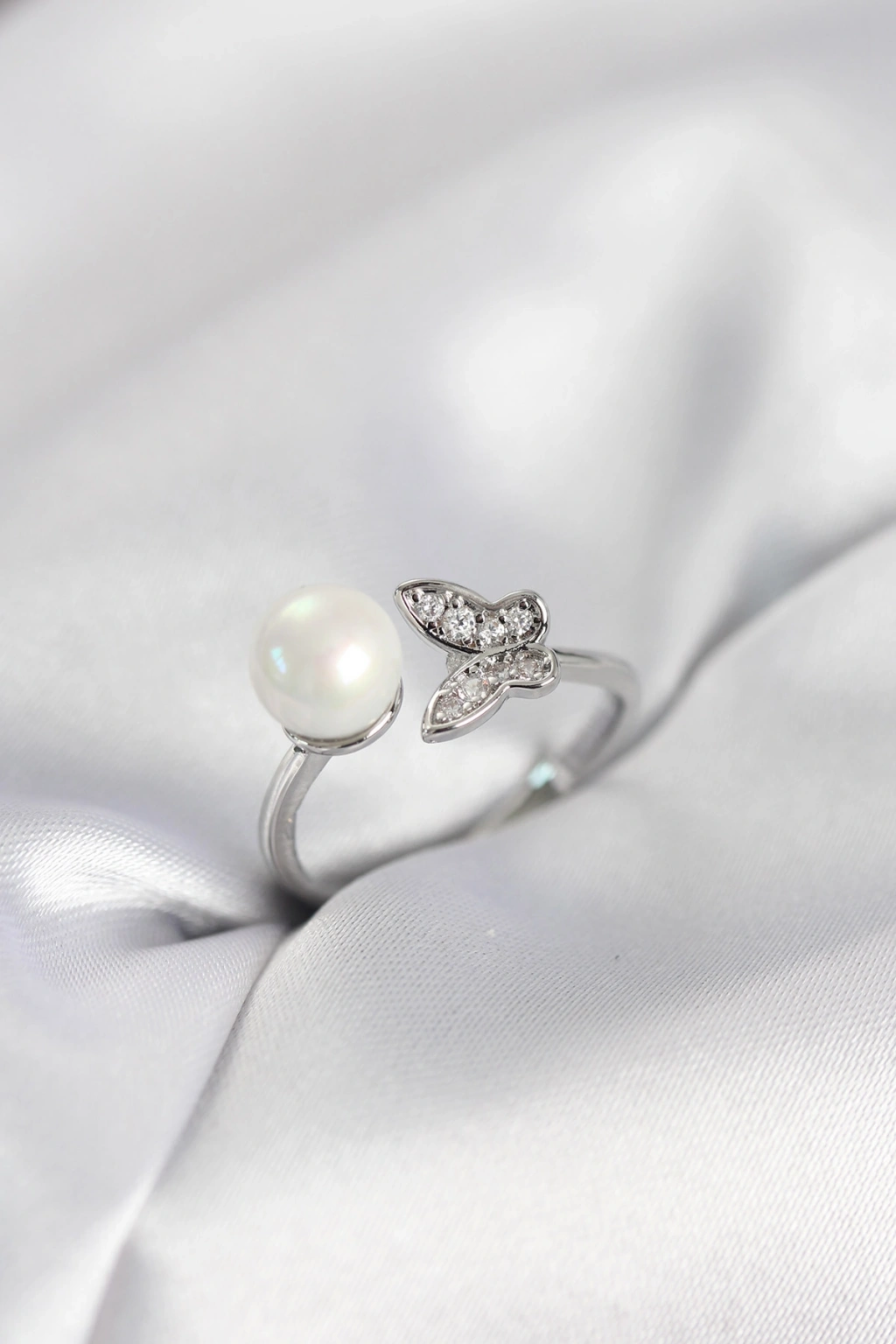 Kelebek İncili Model Gümüş Renk Zirkon Taşlı Kadın Yüzük