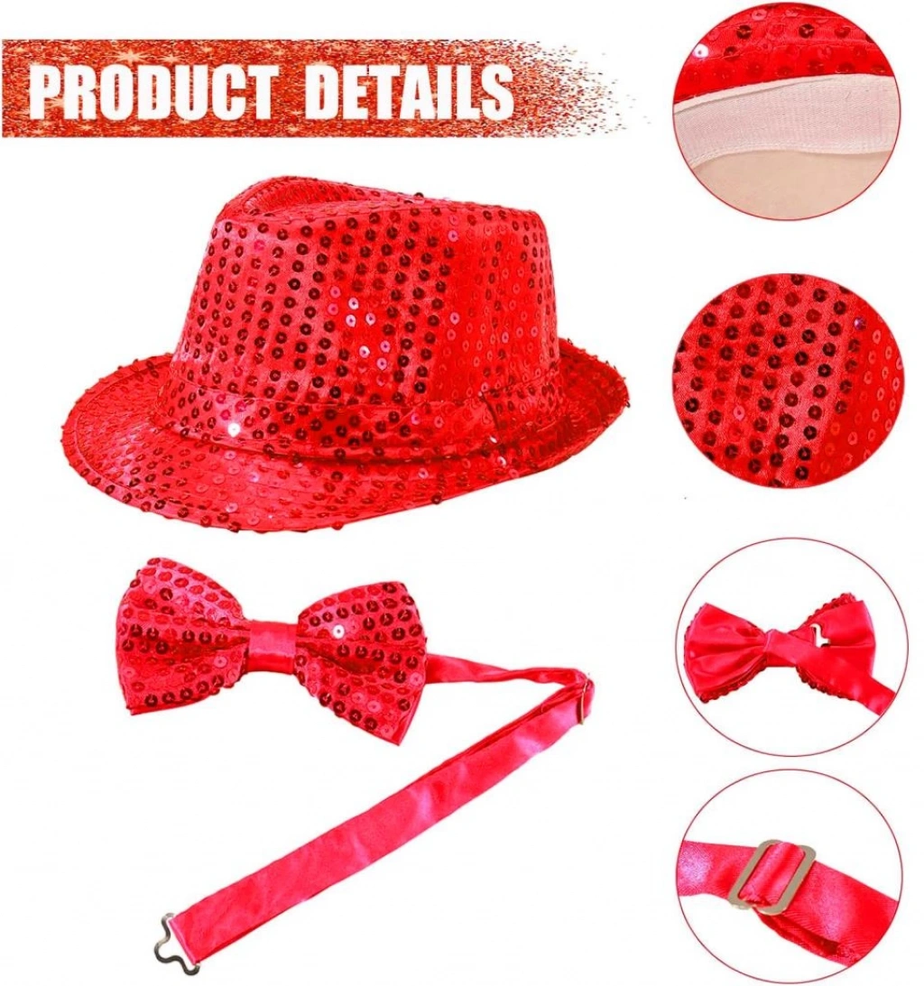Göz alıcı bir tarz oluşturmak isteyenler için Kırmızı Payetli Şapka ve Papyon Seti tam size göre! Işıltılı tasarımıyla özel davetlerden temalı partilere kadar her ortamda fark yaratın.