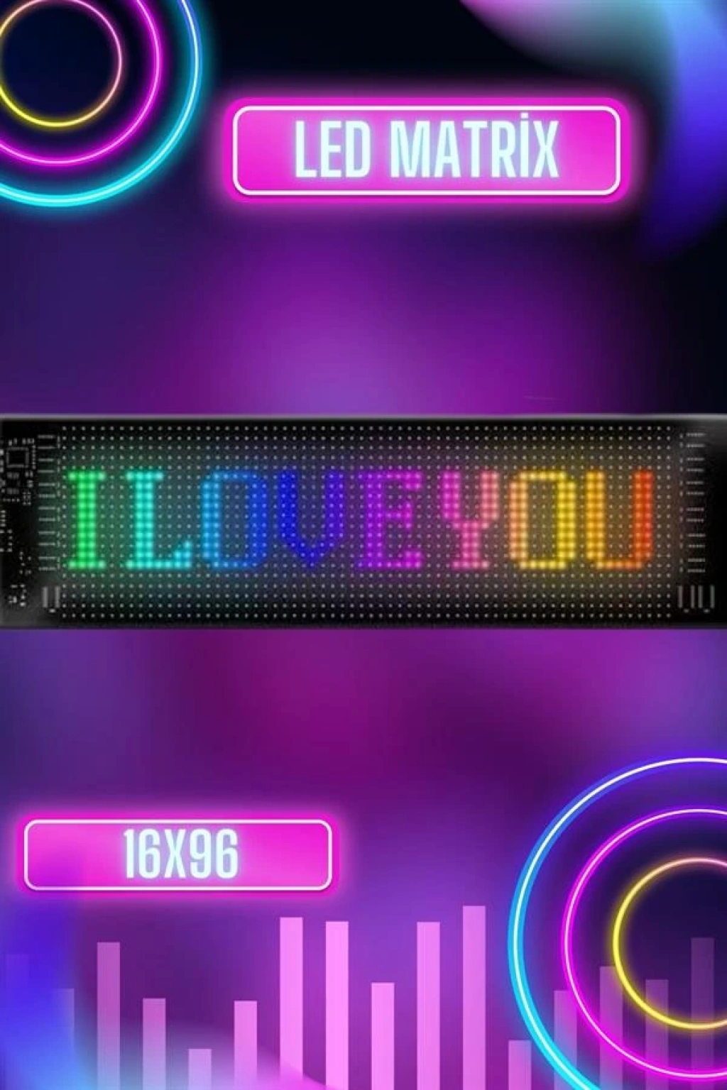 Matrix LED Panel, içerisinde yüzlerce GIF ve kişiselleştirilmiş yazı ekleme imkanı sunarak dikkat çekici bir görsel deneyim sağlar. Geniş kullanım alanına sahip olan bu ürün, arabalar, otobüsler, evler, iş yerleri ve daha birçok alanda rahatlıkla kullanılabilir. Dayanıklı malzemelerden üretilmiş yapısı sayesinde uzun ömürlü kullanım sunarken, göz alıcı LED ışıkları ile her ortamda fark yaratır. 5V 2A gücündeki USB bağlantısı sayesinde herhangi bir USB girişi veya çıkışından kolayca güç alarak pratik bir kullanım sağlar. Mobil uygulama desteğiyle yazılarınızı ve GIF'lerinizi istediğiniz zaman değiştirebilir, ortama uygun dinamik bir görünüm oluşturabilirsiniz. 16x96 cm boyutlarıyla hem pratik hem de şık bir tasarıma sahip olan bu LED panel, araç içi ve dış kullanım için uygundur ve hayatınıza renk katar.