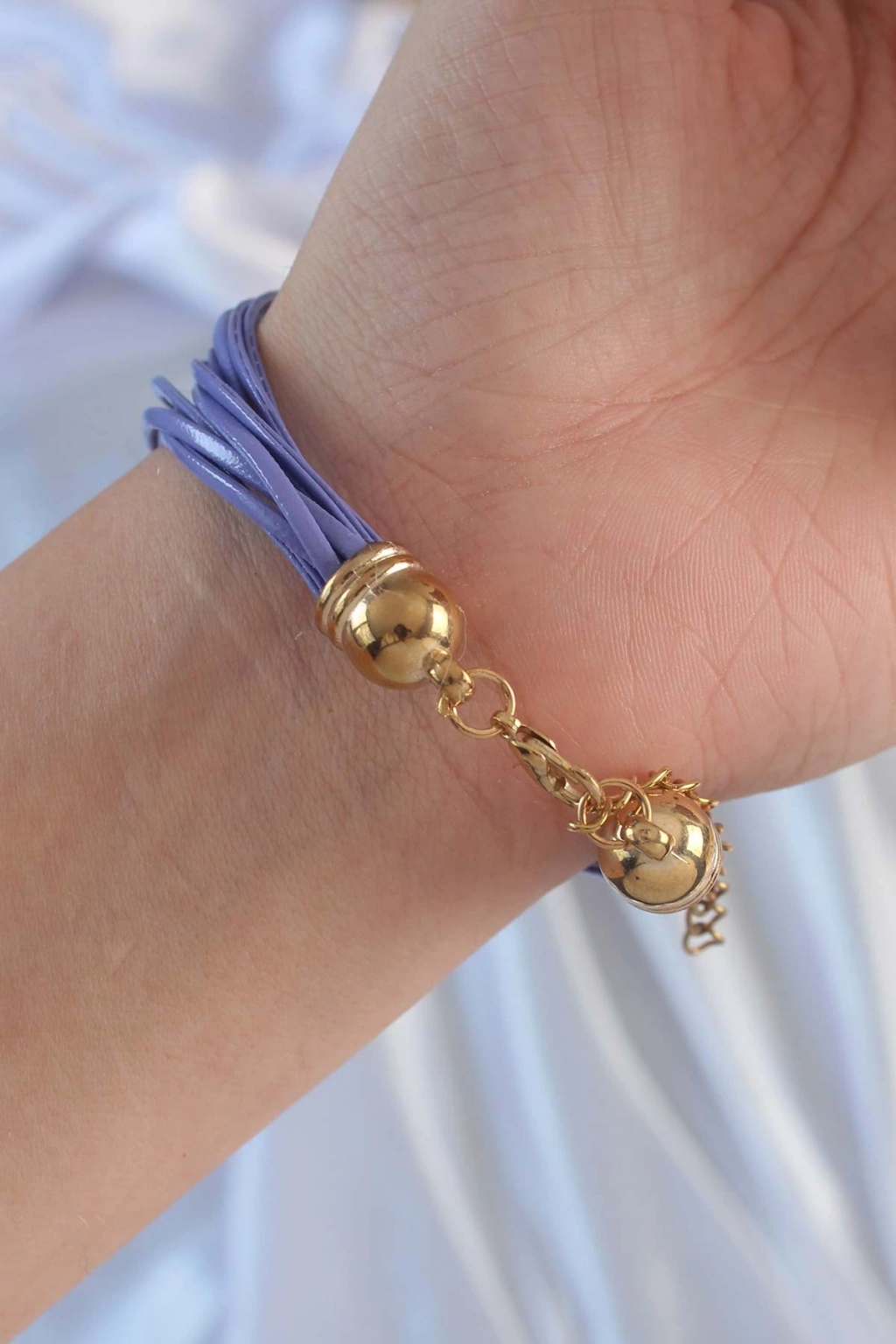 Lila Renk Zirkon Taşlı İpli Çoklu Bileklik